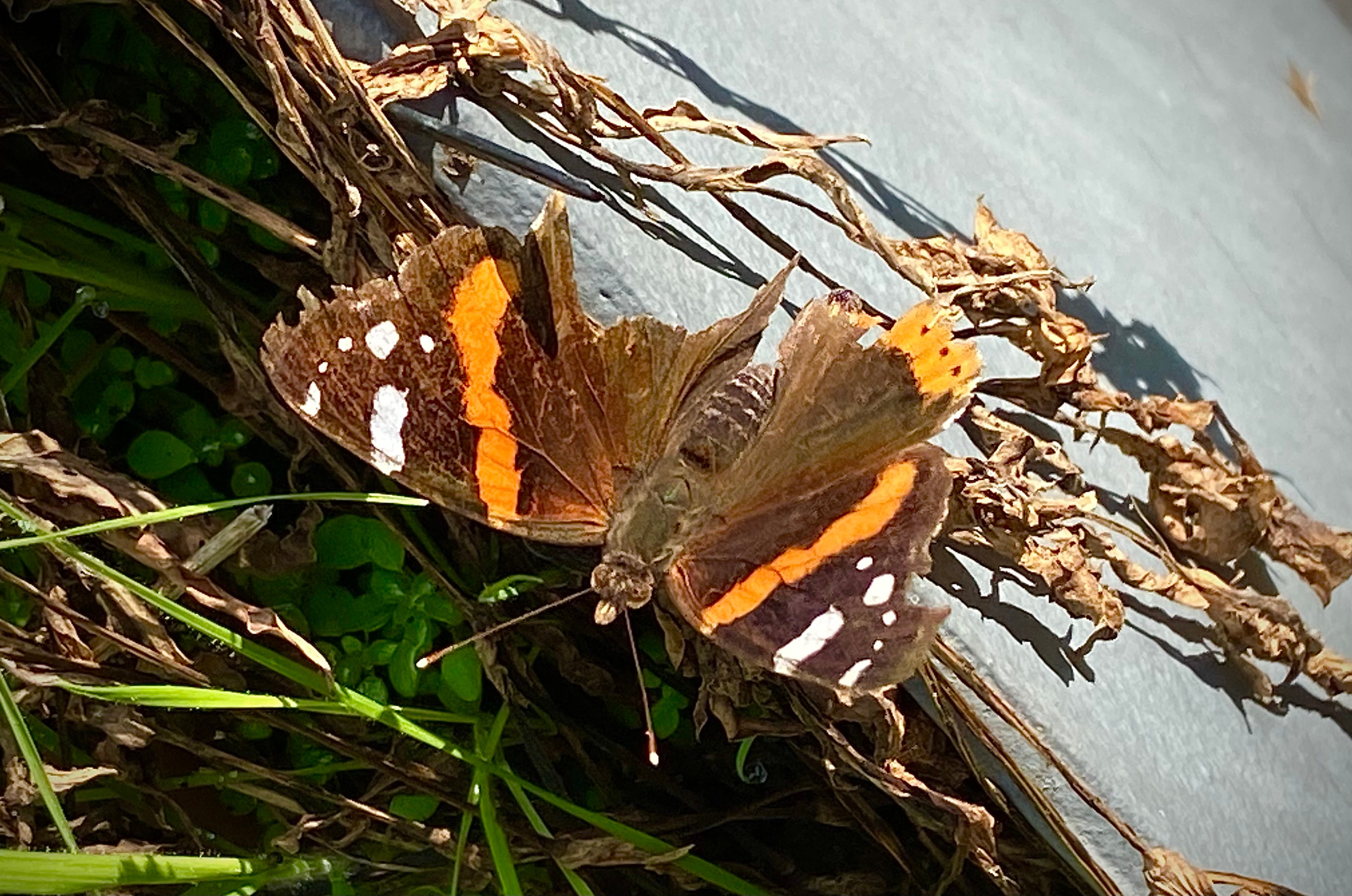 I keep thinking the last butterflies have come and gone, and then more stragglers show up. I spotted this red admiral by our front steps the other day, its wings jagged and torn but still able to fly with remarkable strength. Chances are it plans to spend the winter here after a long migration, a good bit further north than Vanessa atalanta normally stops. The species, originally called the red admirable by the English, was Nabokov’s favorite. The Russians called it the butterfly of doom.