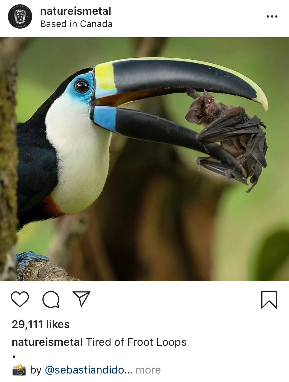 If you spend much time in these woods, you come across a lot of dead animals. Especially in winter, when the coyotes seem more active, and you may step into a clearing to find the remains of a deer they have taken down. The river is wild kingdom all day long, never-ending smorgasbord of the herons who strut around in the shallows like predatory supermodels at a grisly live sushi bar. In the early morning the caracara come out to find whatever carcasses have been left on the banks by the night hunters. Nature is Metal, as the dark Instagrammer proclaims, in a gruesome feed that proves its point aggregating footage of animals and their kill from around the world. Here’s one of the tamer posts:
