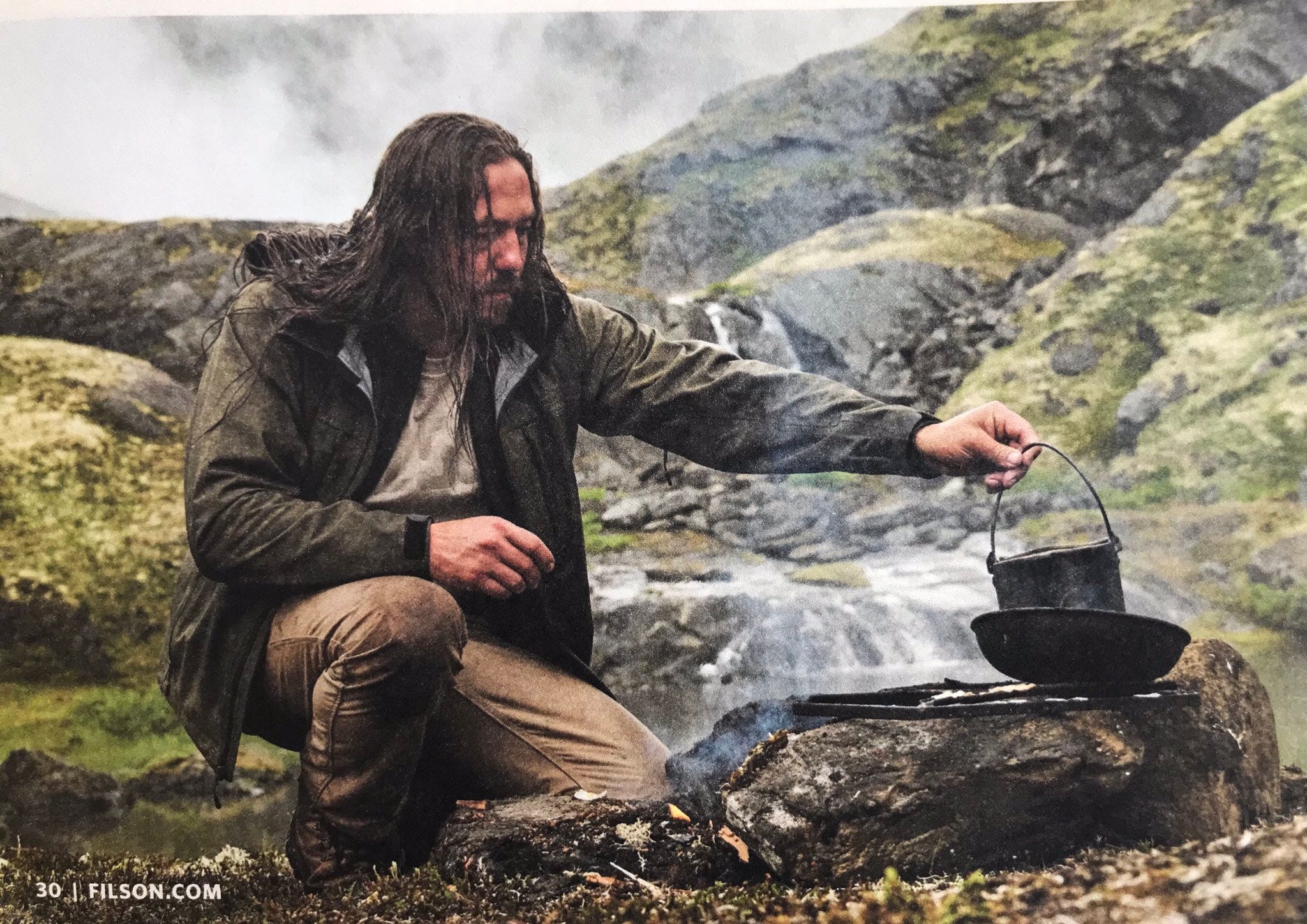 Some of the most unintentionally entertaining of these catalogs come from Filson, a Seattle company whose roots really are as an Alaska outfitter. I am a sucker for retro gear, and I have bought some stuff from them over the years, including a pair of waxed overalls that seemed like a good idea for heavy backyard rewilding, only to quickly acquire the kind of odor I should have thought to expect from an unwashable moisture-sealed full-body garment deployed under the Texas sun. Filson kind of jumped the shark when it got cross-pollinated with the hipster search for pre-digital authenticity, and the catalogs often broke through the wall of self-parody.