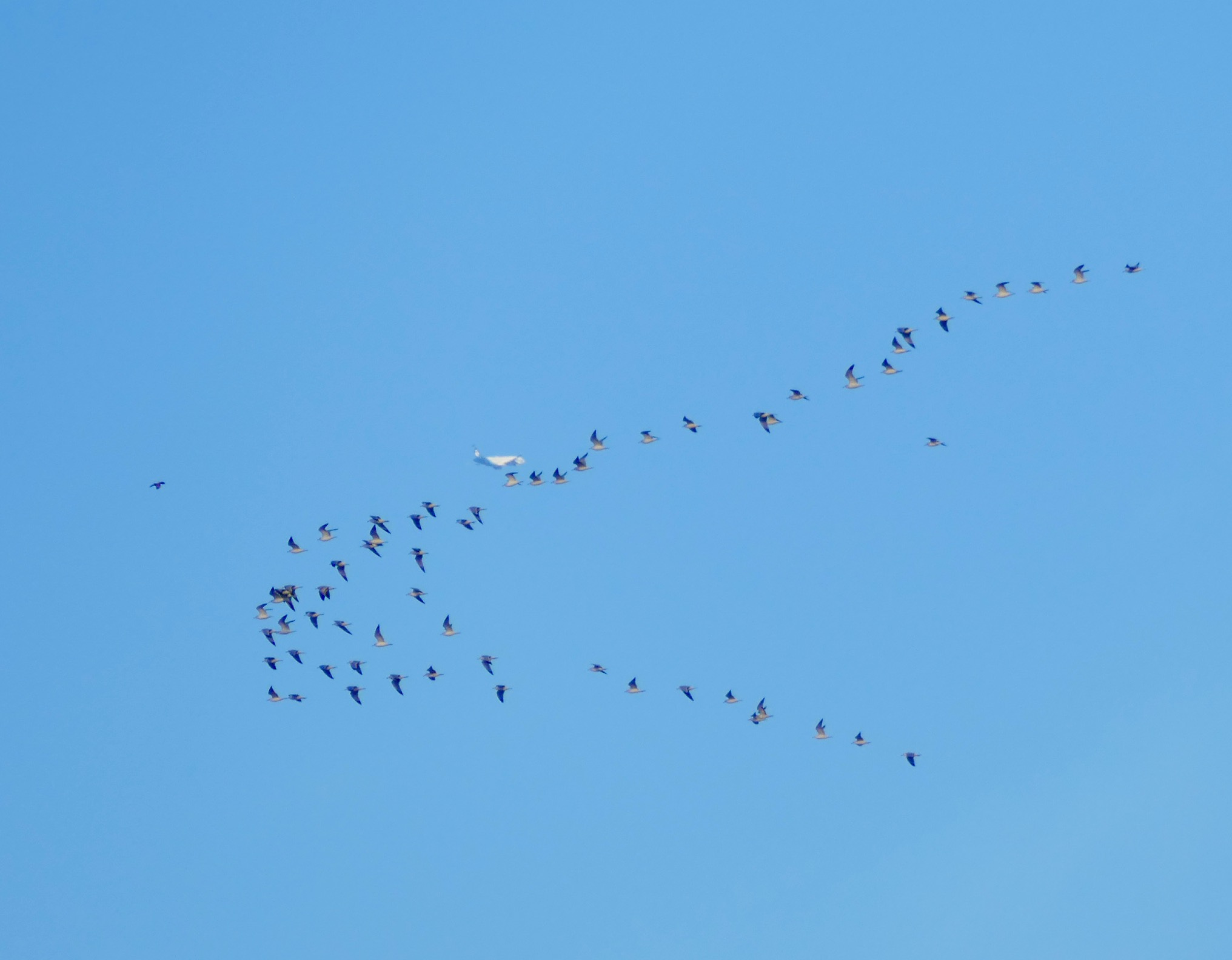 As I stood there admiring these amazing trees that must have been there long before the city came to surround them with logistics hubs and data centers and drone pads, I saw a flock of birds flying over the Amazon facility in a rough V-formation, headed south-southwest. Terns, from the look of them, maybe coming from the same zone as the Alaska Airlines 737 that also showed up in the photos. Rather far inland, if my guess is right, but I was happy to see them and the ancient trees there in a place that reminded me how good we are at erasing the wild, even when we name our companies after it.