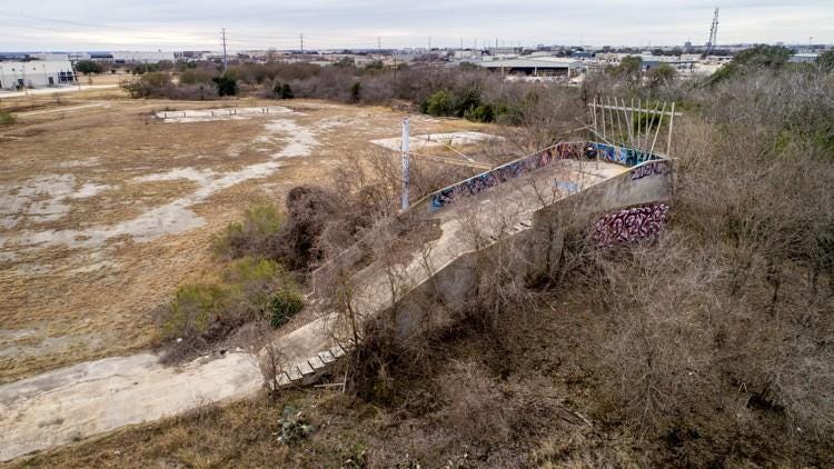 Turns out this was the test site of an early experimental drone, the Lockheed MQM-105 Aquila, a catapult-launched remotely piloted vehicle designed for target designation. The site was active in the 80s, until Lockheed lost the contract. There’s a pretty informative Reddit thread about it, with one ex-employee gratuitously noting that the site was also next to one of the last of Austin’s drive-in theaters and “you could watch X-rated movies from some of the taller ramps.”