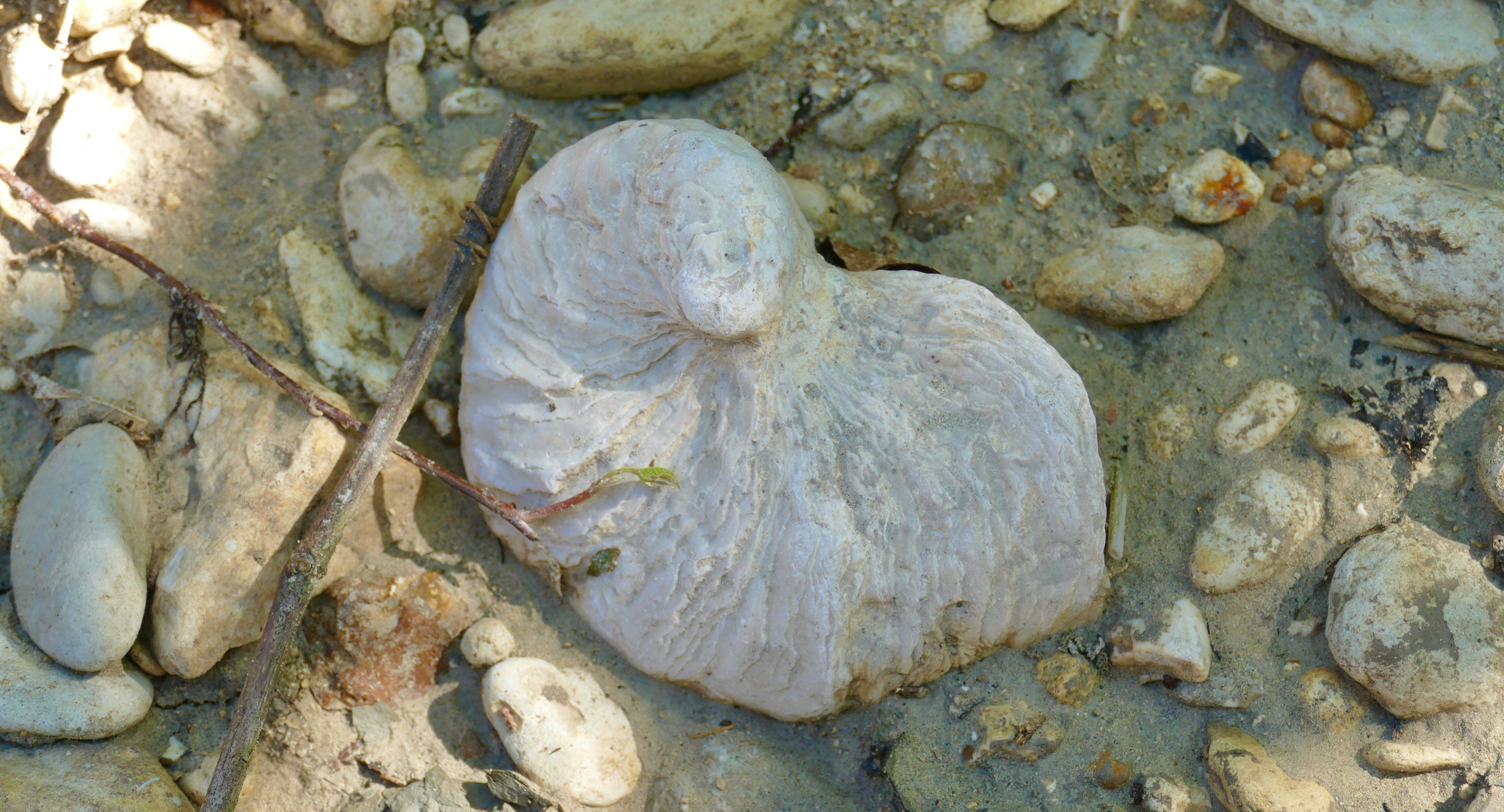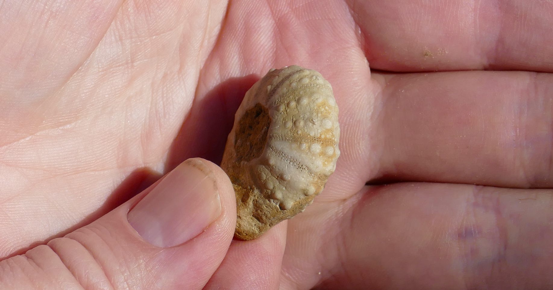 For me the most beautiful thing we found was maybe the smallest, a tiny echinoid from the Cretaceous sea that the professor spotted in the clear shallow water. It was only when I looked at the photos that I noticed the tiny holes through which it must have extended its tentacles.