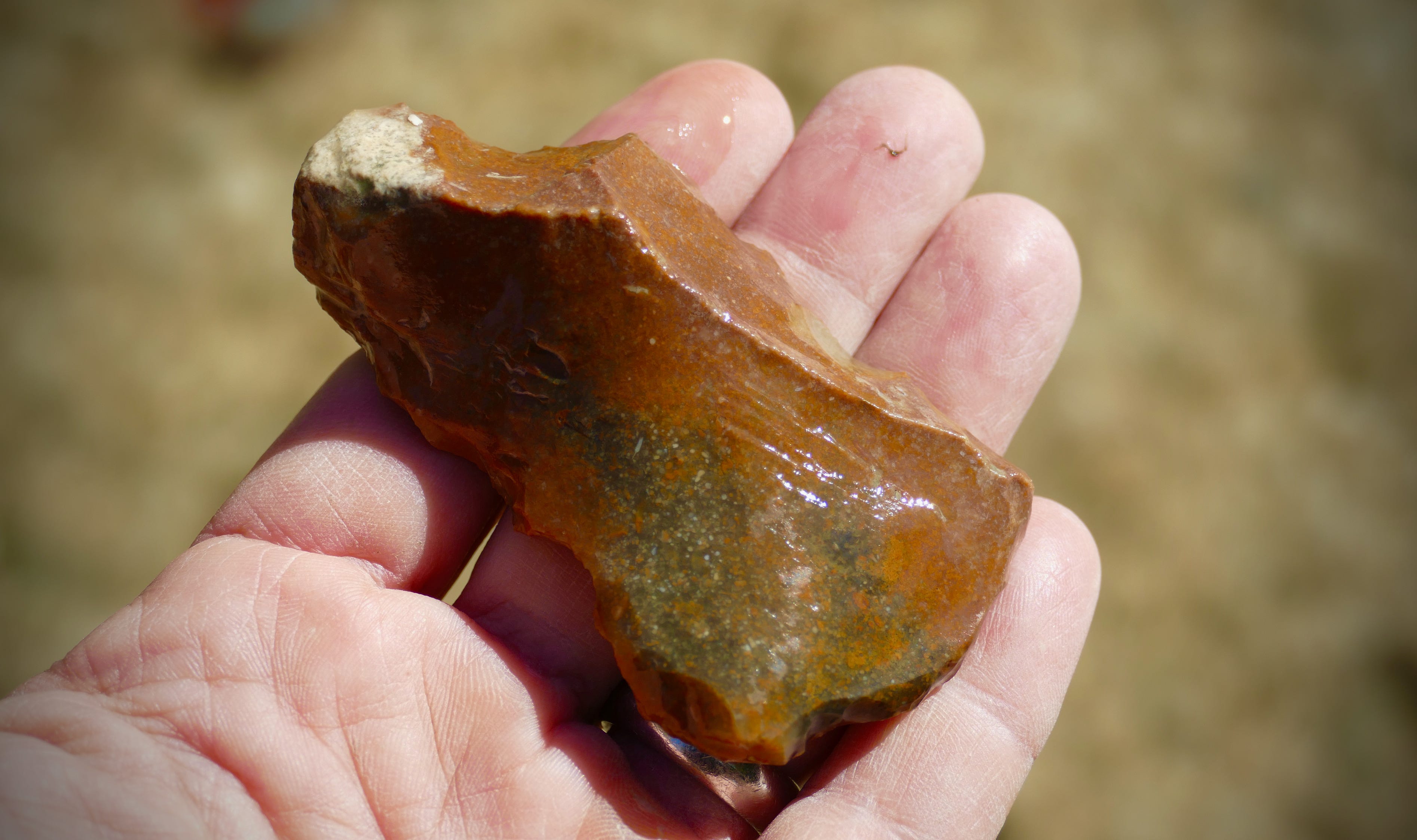 The lush browns of that bone were in the right range for the colors you learn to look for, seeking out orange quartzites amid the gray gravels and sand. We find those kinds of artifacts along the river once in a while, knapped cutting tools that, when you hold one in your hand just right, let you sense the impression left by the person who held it hundreds of years ago, or more. One of our neighbors found a tool we learned was 12,000 years old when we took it to identification day at the university’s natural history museum—a Clear Fork Gouge.