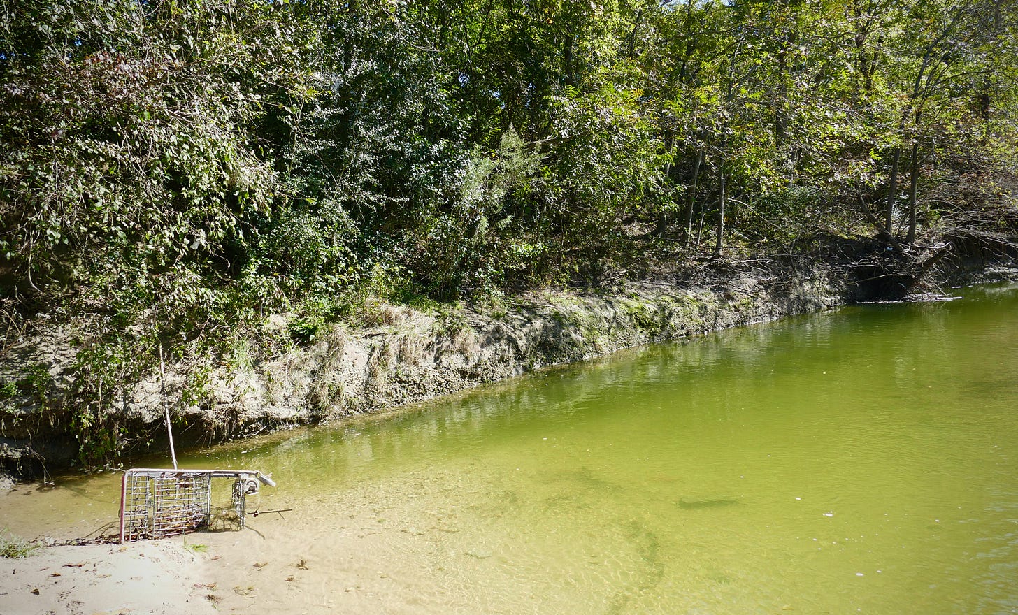 We were looking for evidence of Paleoindians more than dinosaurs, but as soon as we found the trailhead at the back of the empty lots and dropped down into the deep channel of the creek, you could see this was the sort of spot where you would find both. Devil’s toenails littered the banks, and when you looked at the sharp cuts of exposed wall, you could see the layer of freshly exposed ancient gravels there twenty or thirty feet beneath the surface of the earth on which we walk and drive. There were more contemporary artifacts, too—all the garbage the city leaves outside to wash away in the rain, cluttering the chokepoints of the creek—but you learn not to be distracted by that.
