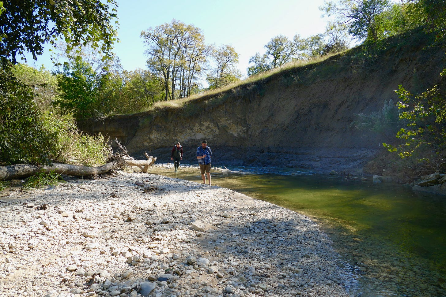 The spot where our swampdogging friend had us meet is one where the Uvalde gravel fingers its way into the heart of Travis County and crosses the path of one of the major creeks that feeds into the Colorado. Creeks cut deeper than rivers, especially when the surrounding landscape is half-paved, and if you find the right spot, you might be like that kid in the 80s who was exploring the secret ravines behind his house with his dentist dad and discovered a plesiosaur, just a few miles west of where we walked.