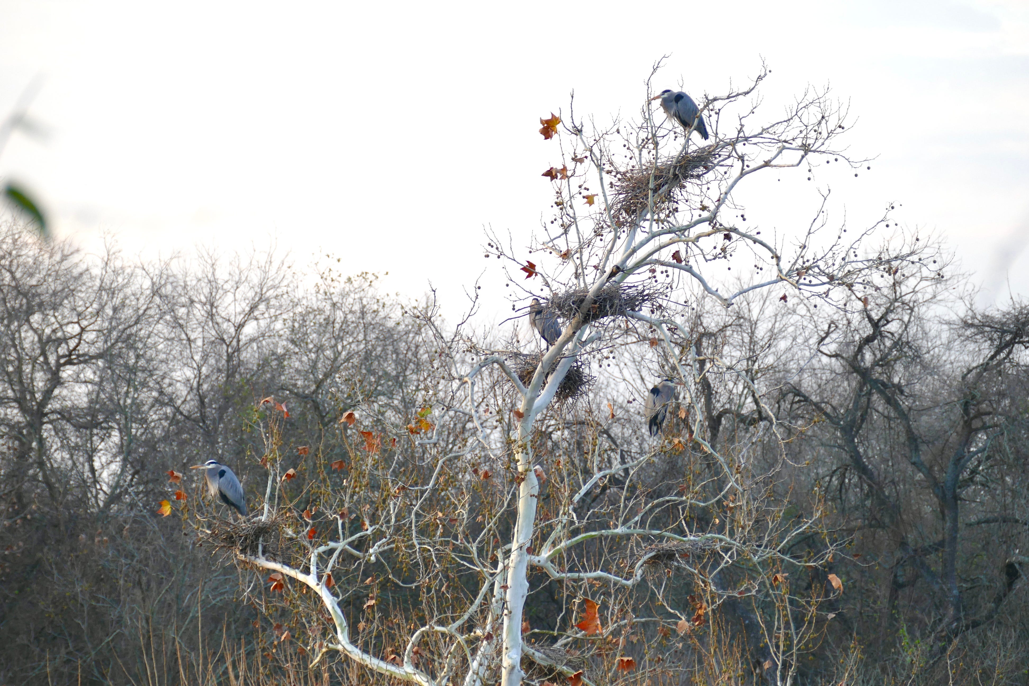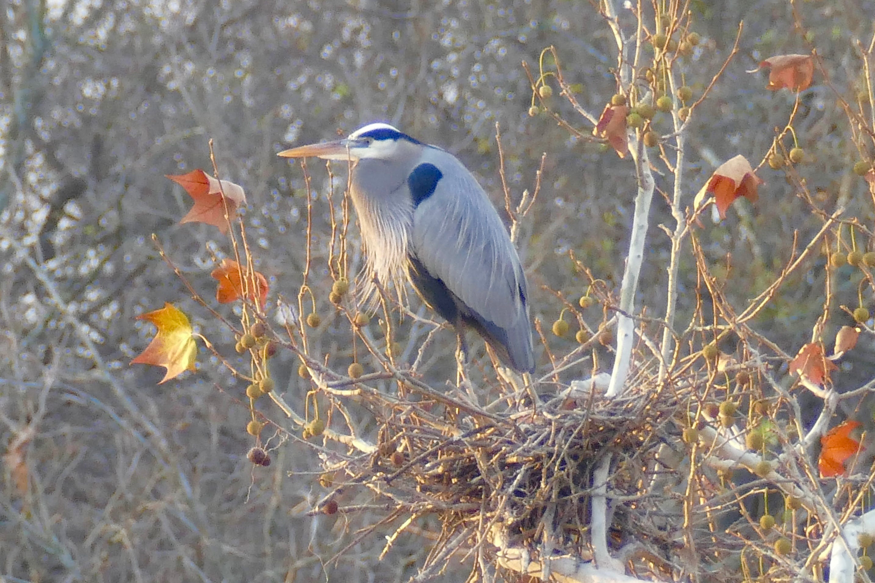 At the opposite end of the long block where we live, there is an old metal warehouse building that for years hosted a characteristically weird mix of hipster chop shops, motorcycle repair places, illegal housing set-ups and one underground music venue that had a skate ramp in the back that earned it the name The Broken Neck. For nine years now new owners have been working on building a boutique hotel at that seemingly unlikely spot. Last year they kicked out all the tenants as they began some of the site work, and the building quickly got ransacked and tagged. But if you walk down there and stand on the busted-up parking lot of the old muffler shop where you could also get your taxes done, you will find yourself staring at a very unlikely thing: the rookery of a community of great blue herons in a tall bare sycamore grown up out of an island of landfill trash and river dirt.