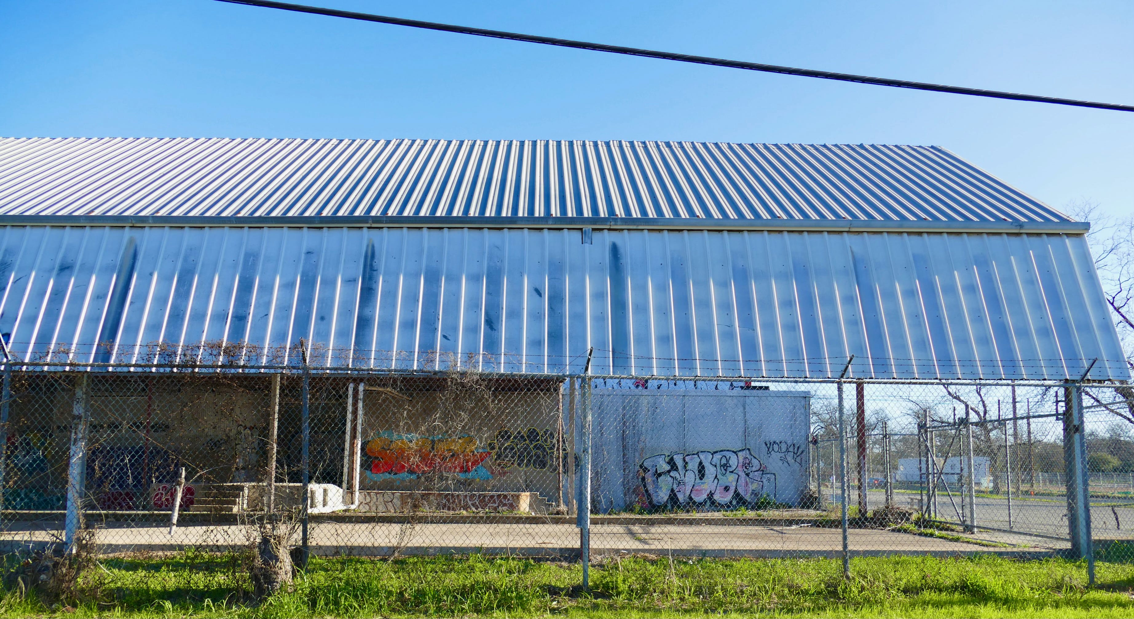 So do the house sparrows, who I found last week nesting in the ruins of an abandoned novelty lighting factory here at the edge of East Austin, just a few blocks east of where I saw the grackle-caracara spat. I’ve noticed the sparrows’ presence there for years, in the shelter provided by the metal canopy that covers the old loading dock along the backside of the building. An area covered in graffiti, and seemingly devoid of food. The factory was active in the 80s, before that kind of fabrication moved offshore. In the early 2000s, when Bush the younger was president, it served as a staging area for the Secret Service. A dozen years ago I found single cufflink there by the sidewalk, embossed with the seal of the presidential retreat at Camp David.