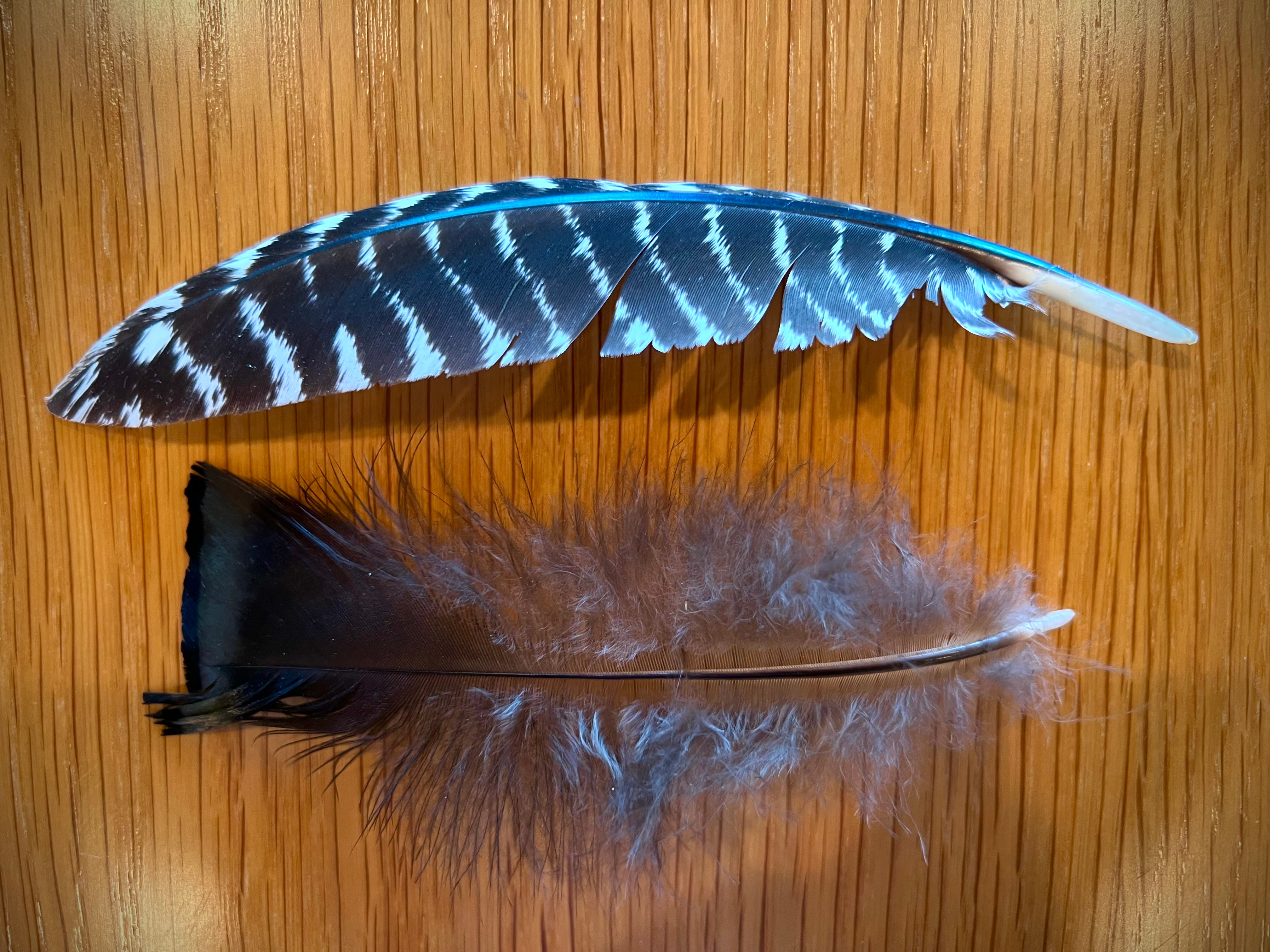 The next morning my adult son, toddler daughter and I went out again, following the path down along the wetter creek and then up the steep washboard hill through the bur oaks. As we walked, the leaves were beginning to fall, and the turkey feathers were everywhere in our path—black and white wing feathers vaned like zebras, and downy brown tail feathers shaped like fuzzy little fans. Our daughter learned to spot them, and collect them, and then she and her big brother began to skip. Every once in a while she would reassure me that “we will find Papa.”