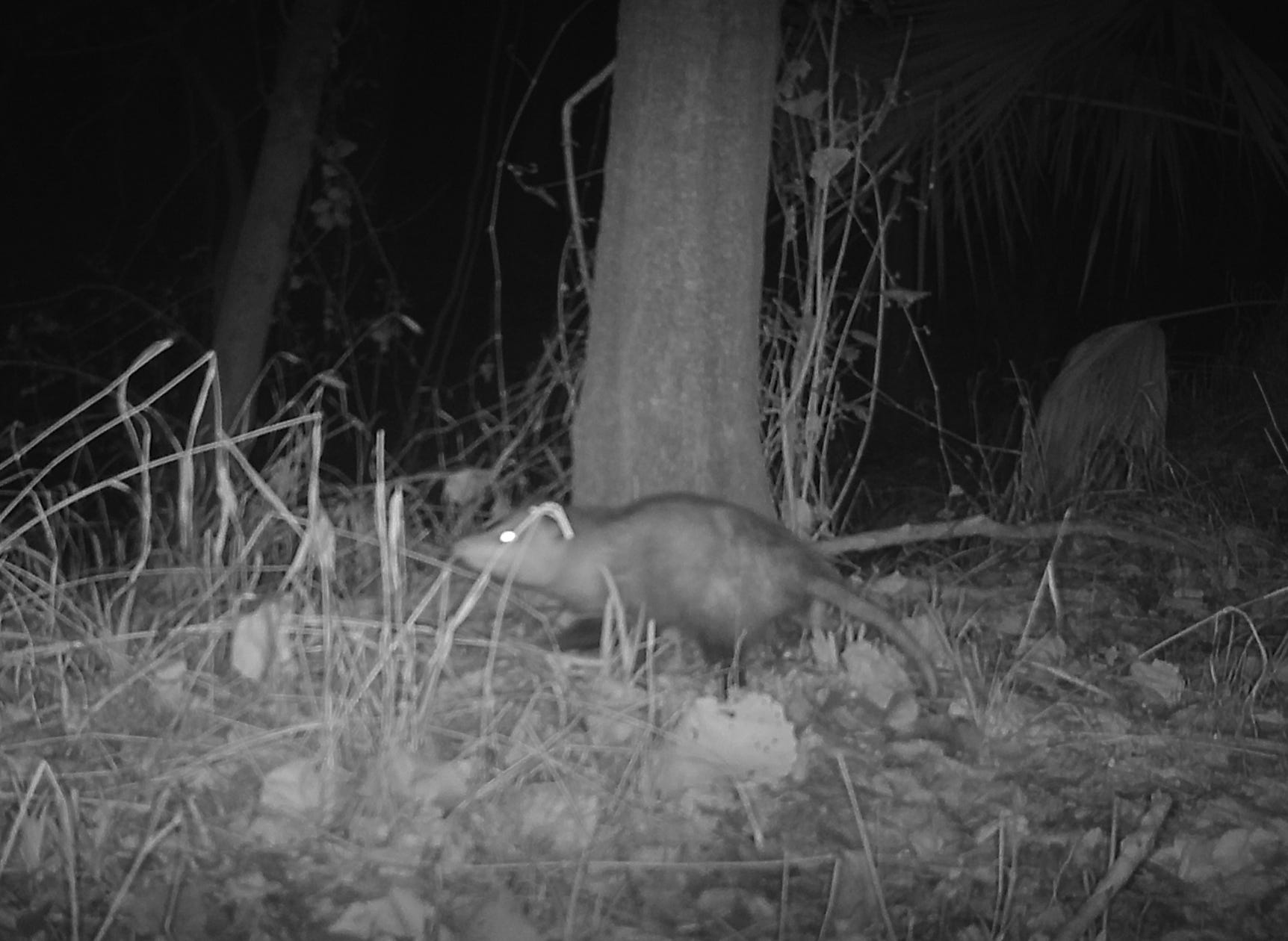 The gift of opossums for playing dead is so incredible. Once I broke up a daylight encounter with a hose. The opossum that had just been in the jaws of two dogs, each pulling at one end like one of those rope toys they sell at the pet store, was small. When I grabbed the shovel to take it away, it suddenly opened its eyes and snarled at me. Then it shook itself like a character in a Bugs Bunny cartoon, and ran, right under the fence. Even the dogs just stared in astonishment at this resurrection.