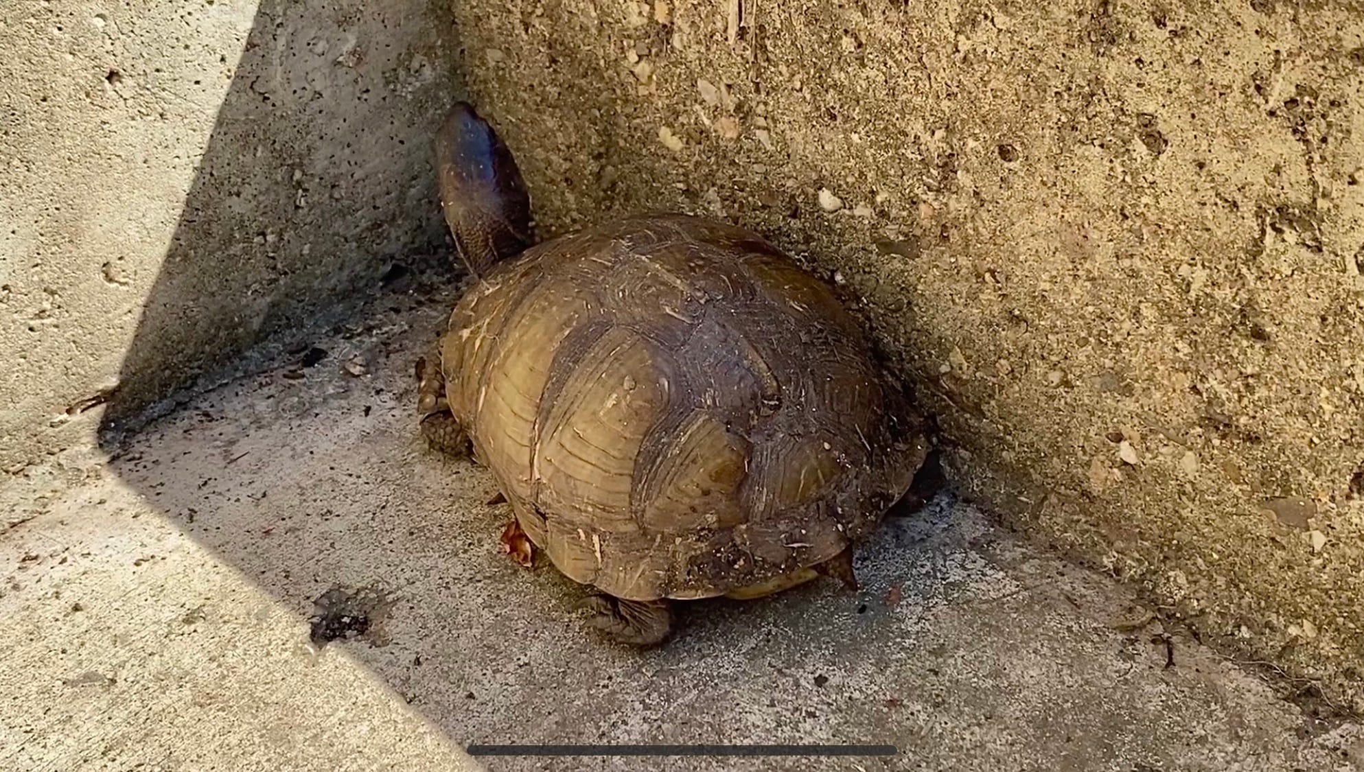 When you see a turtle determinedly working its way deep into your domain to find a sanctuary for its babies, you appreciate the fables about the virtues of their slowness in a new way. Thursday afternoon we found one at the base of our entry stairs, with just the look on its face you would have if you had wandered off far from home to save the future of your progeny, only to find yourself boxed in by an unclimbable wall of concrete.