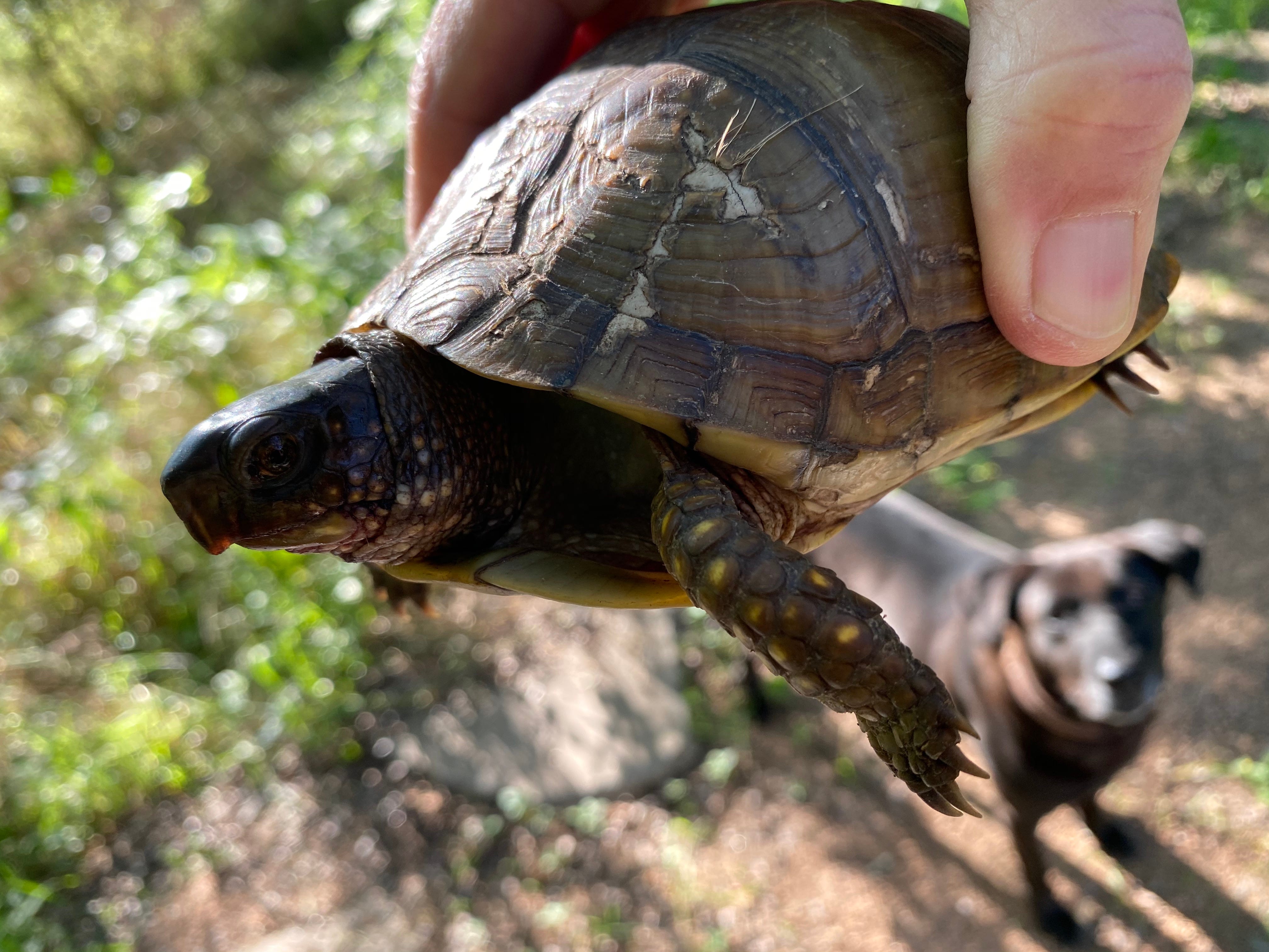 I rescued two turtles from our yard this week, and when I set them back outside the fence here at the top of the bluff, they immediately started slowly lumbering further into human space, back on mission. Some will cross the road, and a few will end up as roadkill.