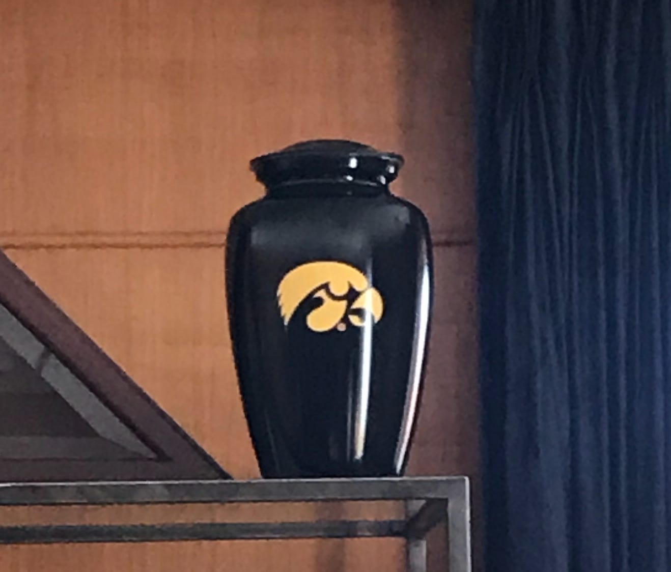 The word “cremains” has to be an American invention, by practitioners of the trade who have made incinerated human corpses into a weird sort of product. A dead body you can keep on your mantle. When my parents and I first met with the funeral director in the winter of last year, it was in a conference room with various urns to choose from on a shelf in the wall. When I saw Herky, I knew that was what Alex would have wanted, rabid fan that he was, one of those guys who fully occupied the zone with unwavering emotional commitment when the game was on. He would have loved it, and he would have laughed about it.