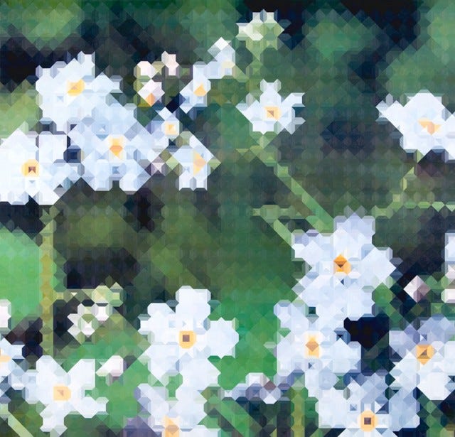 Alex won’t come back, like an opossum or a Lazarus. You know that when the cremains float away. I don’t know what lost planet he is on now, but at least I can still see his elusive reflection through that painting he left us, in the shadows of the trees that used to scare him, but can scare him no more, in the place where the morels are always popping.