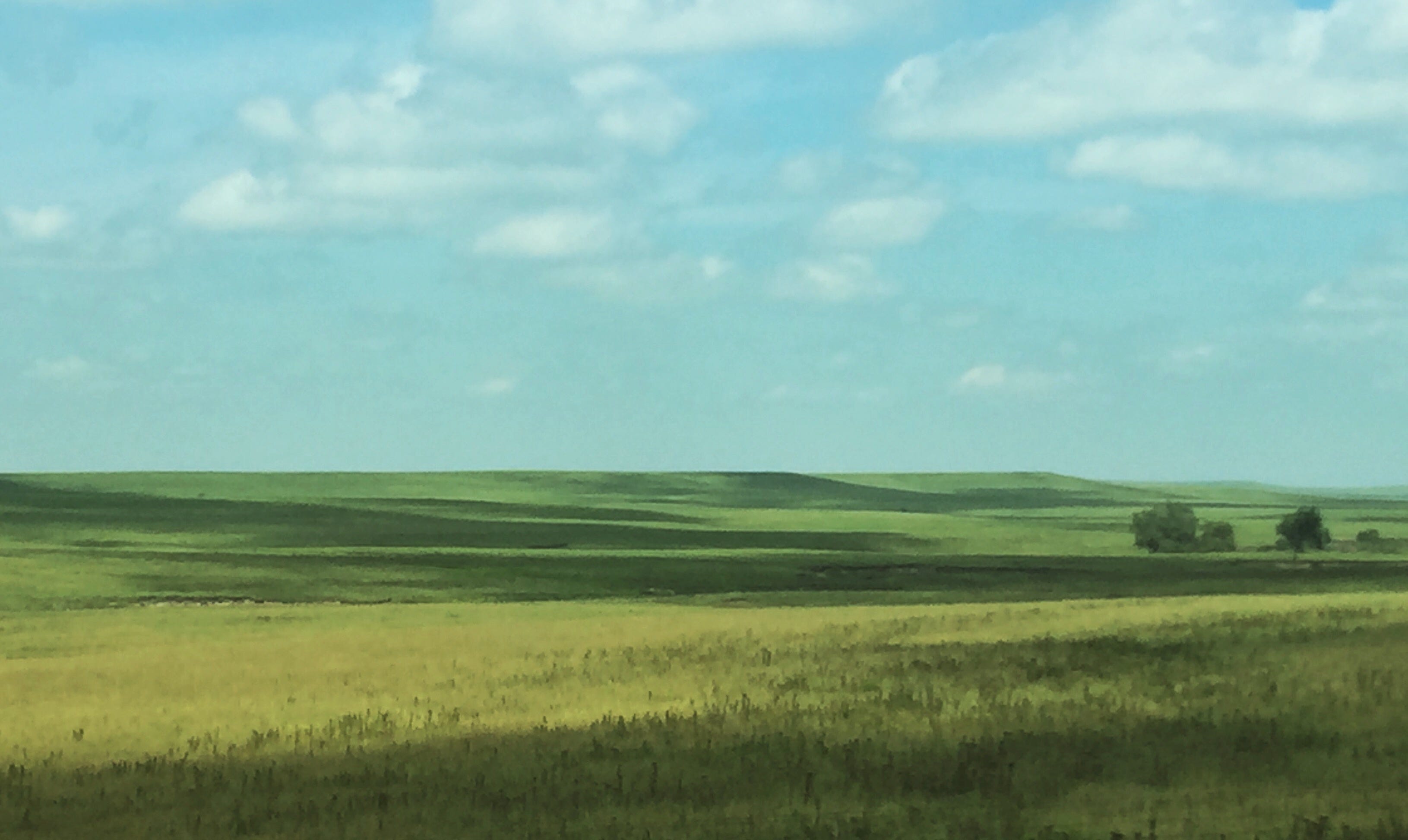 The dystopian novelist in me was curious to see the apocalyptic landscape between here and there, but the truth is that the American heartland through which we travel is already a grim landscape even without pandemic, a zone of ecological, economic, and cultural exhaustion that becomes even more evident if you get off the interstates and onto the old highways, the ones that follow the paths of the pioneer trails, which in most cases were trails the pioneers took from the Indians, and the Indians learned from the animals we eradicated. The Tropic of Kansas is not a real place, but you can see it from here.