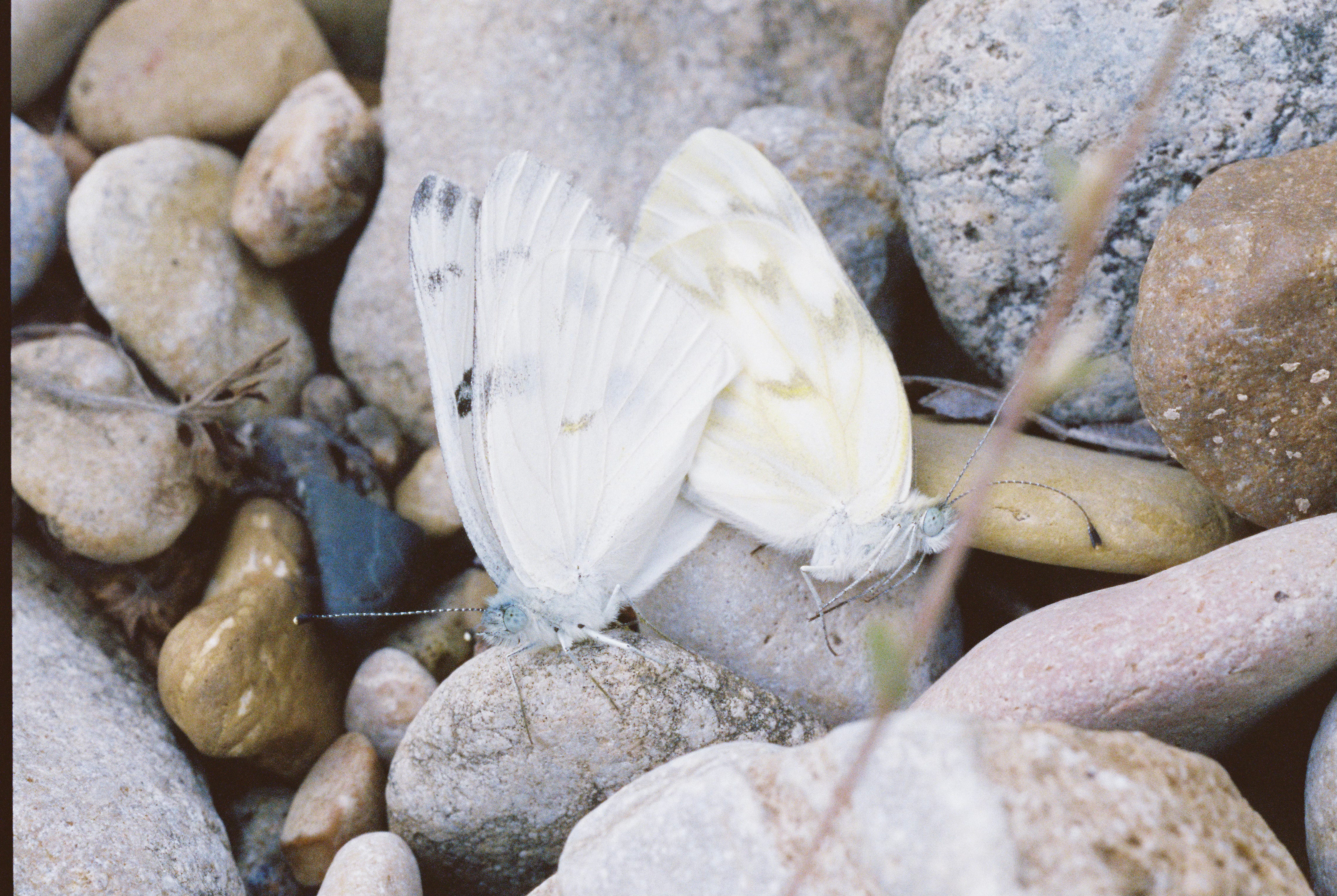 For an especially photogenic pair, here are the male and female checkered whites I found mating on the rock beach behind us, a rewilded old gravel dredge on the banks of the urban Colorado: