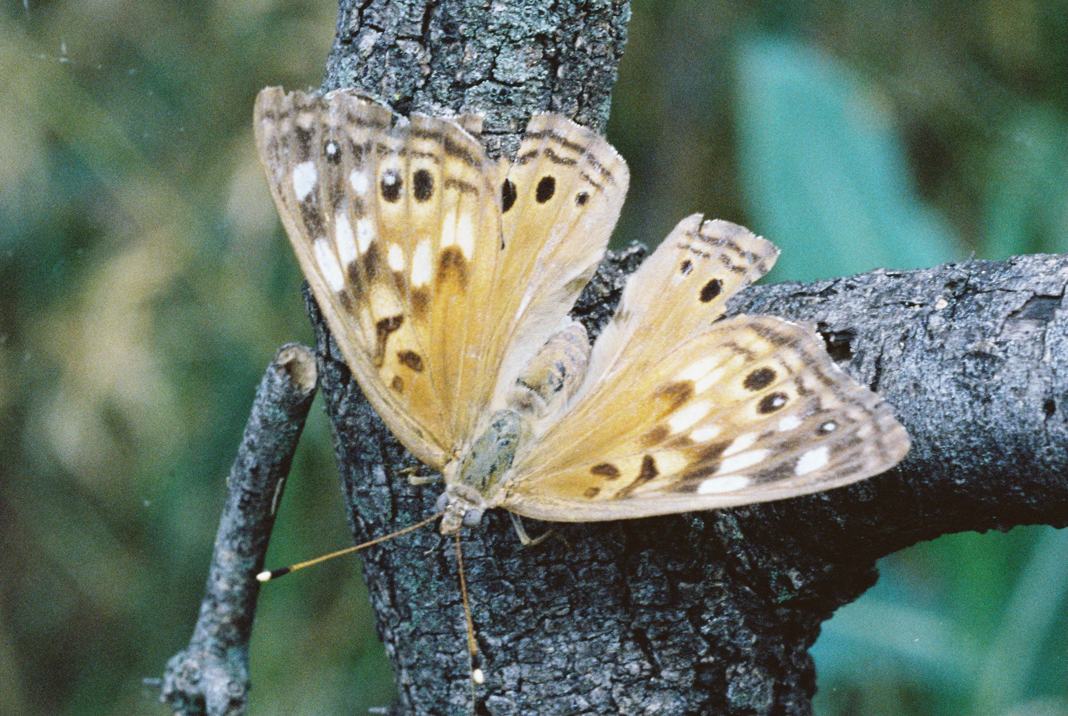 My own vision quest this spring has been to experiment with analog film photography of the native life that surrounds us here in the East Austin edgelands, using the Canon F1 I liberated from my dad’s basement a few years ago, and the accompanying macro lens he used to take pictures of people’s teeth in the 1970s. The best time to catch wildlife around here is early morning, which is also a tricky time for film photography, as the light is not yet bright, and especially challenging for microscopic close-ups. So I’ve been playing with tungsten film designed for low light—Cinestill 800T the folks at Austin Camera hooked me up with. The latest roll came back with some cool exposures, including a bunch of butterflies who stayed still for me as they pigged out en masse around a riparian mulberry tree.