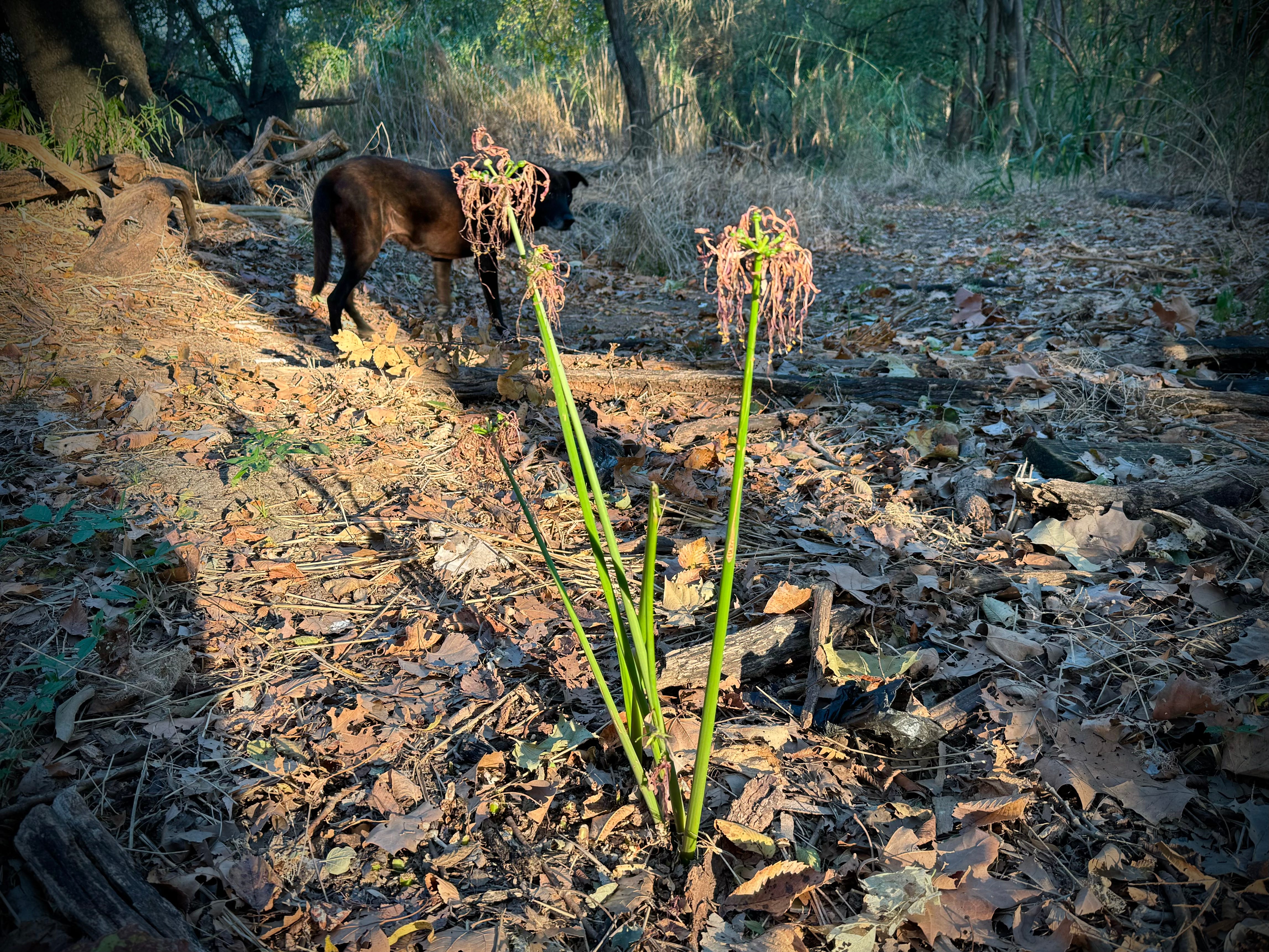 Saturday morning Lupe and I went for a walk in the empty lots behind the abandoned dairy plant, now that the morning temps are finally cool enough for her old bones to comfortably ramble. The plant they call old man’s beard, a vine that expresses late in the season with extravagant feathery blooms, bringing new life when all the other plants seem to have given up, was abundant and lush on the scrubby young mesquites, as a passenger jet took off against the rising sun.