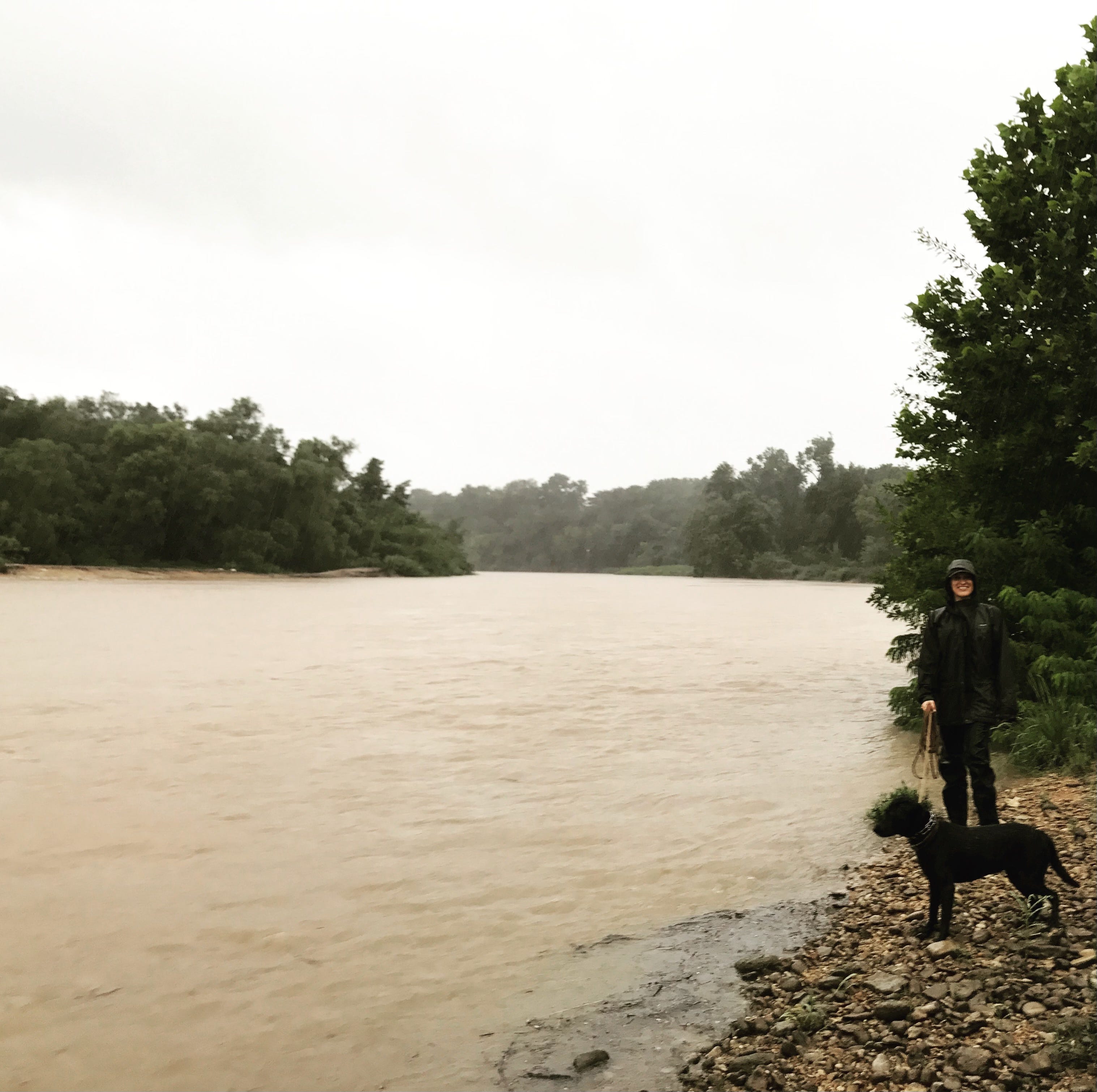 We live 200 miles from the coast. We also live on a river, our house perched on an eroded, trash-ridden bluff just above the floodplain. We’ve been through three major hurricanes since we moved here in 2010, each of which delivered heavy rains to where we live, flooding the river, twice rising far enough up the last bank that separates us from the river that our dogs could swim in the yard. In the first of those storms, our neighbors seven doors down had their entire yard slide right into the river. We get scared, but then it’s okay, and we enjoy the way a walk into the disaster area suspends the monotony and self-absorption of everyday life.