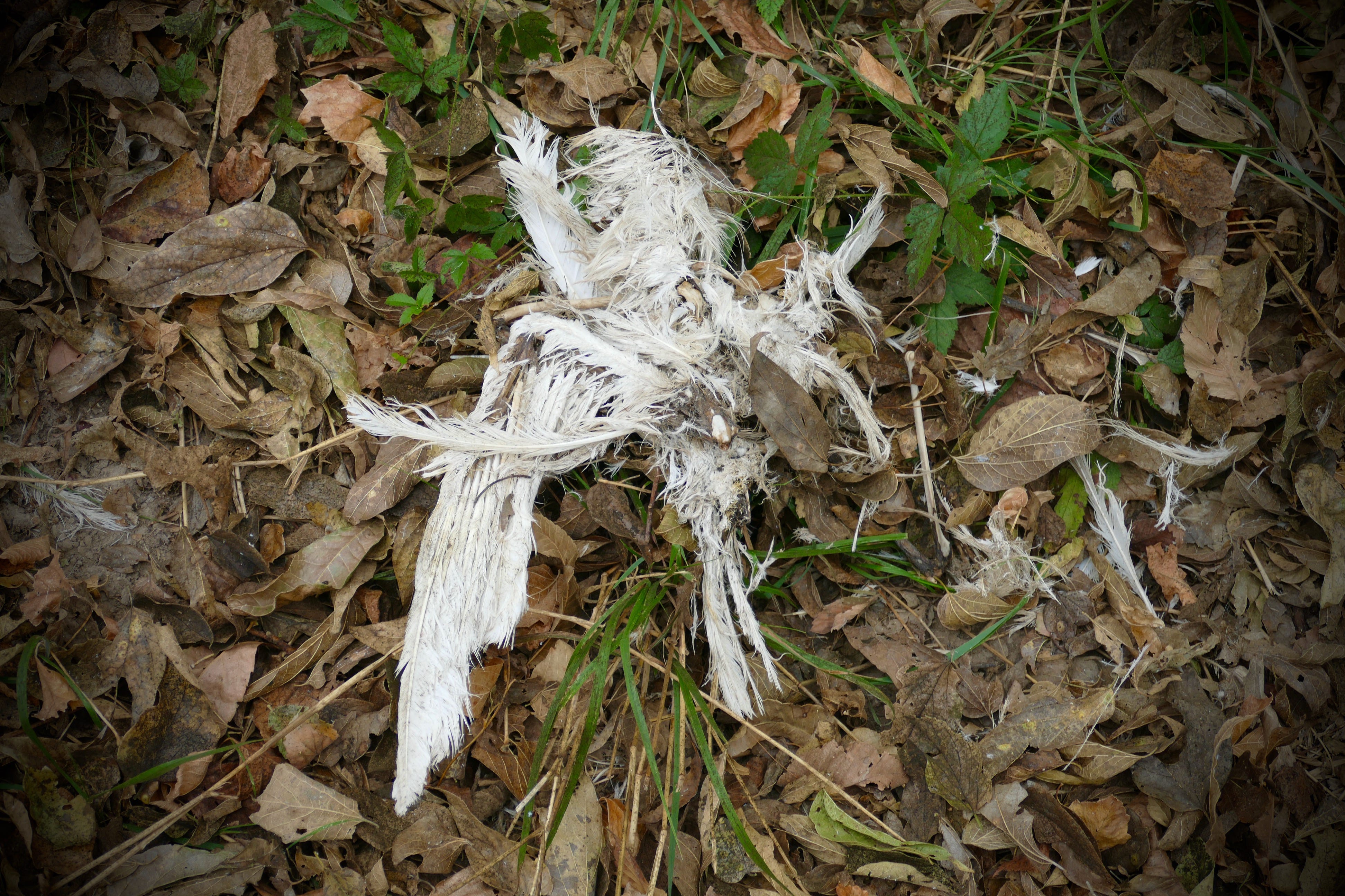 The next morning I found the remains of another bird deeper down in those woods, a heron or egret, and wondered who might have taken it—coyote, raptor, or cat. A better tracker would be able to reassemble the whole story encoded in this remnant on the forest floor behind the dairy plant. My guess would be that this time the mammal won.