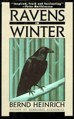 This was not much of a week for non-required reading, but one book’s lessons came to the front of my mind as our world went white, a book I read when it came out in 1989: Ravens in Winter, by Bernd Heinrich. In my memory, it’s one of the most beautiful works of nature writing I’ve read, but that probably has more to do with the character of the writer and his subject than the quality of his prose.