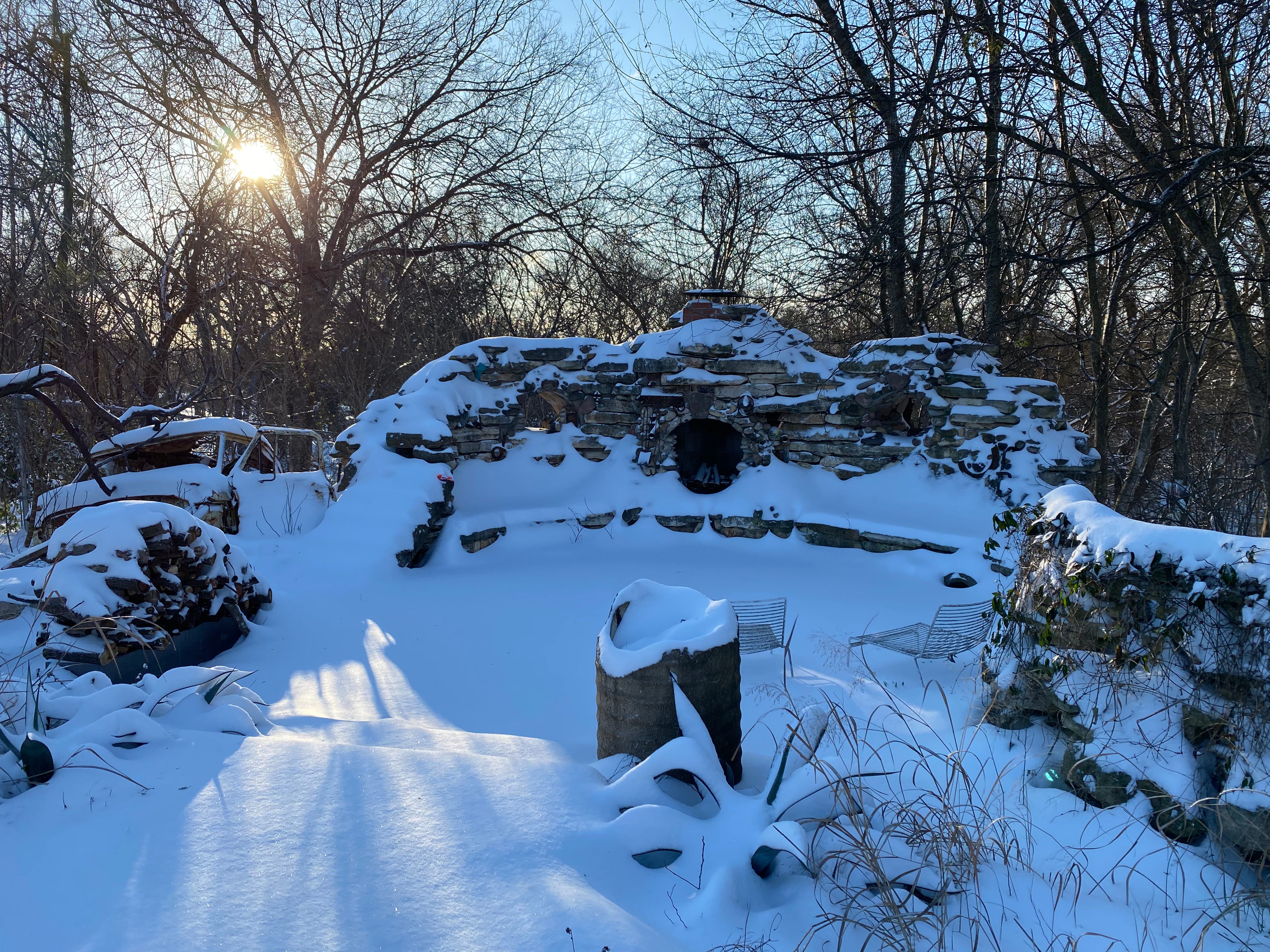We were lucky. Over two nights without power or heat, our house never dropped below 60°F, even as outside temps dropped to the single digits, without factoring in the wind chill. We had gas and running water throughout the week. Living like hobbits in an earthen house that adapted the learning of Native American pit houses served us well. We got cozy, and figured out how to make the best of the situation. The stress was intense and abrupt, but the situation was also liberating in a way—the focus on immediate survival needs of household and neighbors has a way of obliterating one’s usual self-absorbed preoccupations in a hurry. I remembered the lesson of Binx Bolling in The Moviegoer, that times of catastrophe are when you feel most authentically alive.