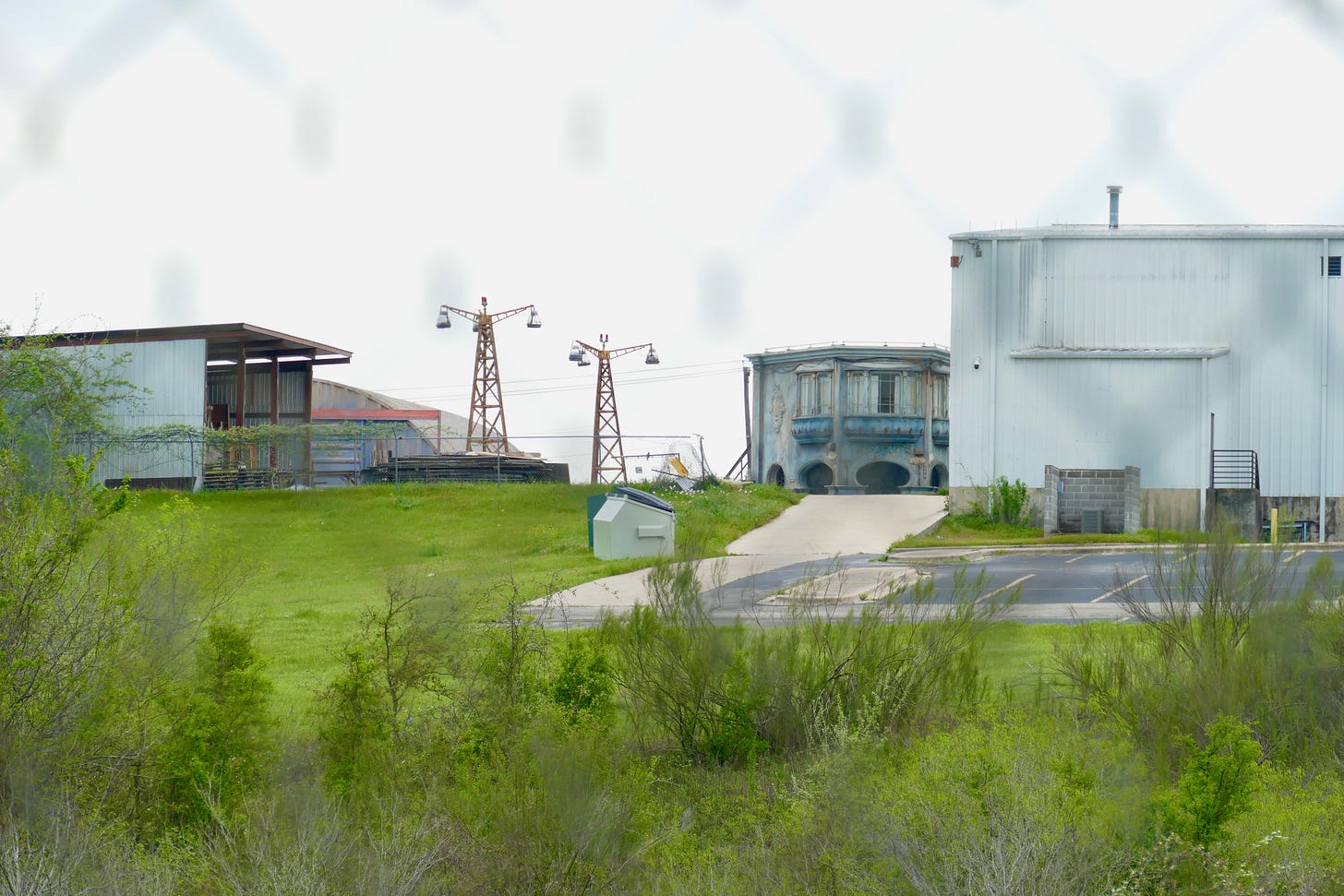 I parked on the dead-end street that leads to Robert Rodriguez’s Troublemaker Studios, the gate of which has just one sign warning DANGER: HIGH VOLTAGE that you would only know is a prop repurposed as psyop if you already knew who the tenant was. There was another, even more secure facility across the street, what looked like a tech fab. Across from that was an overgrown field that leads to a thick stand of trees, behind the cable ropes that probably suffice to keep most people out.