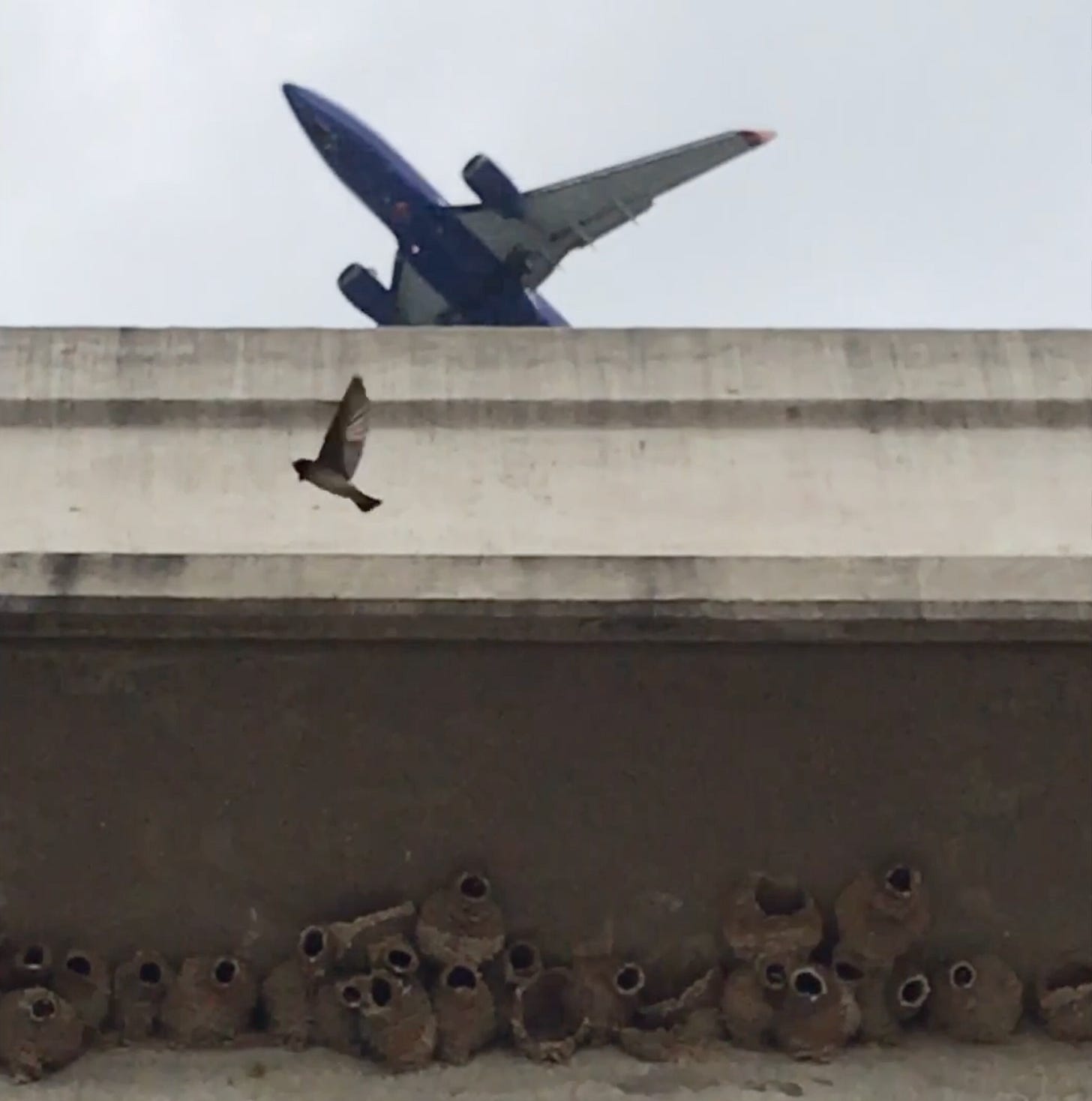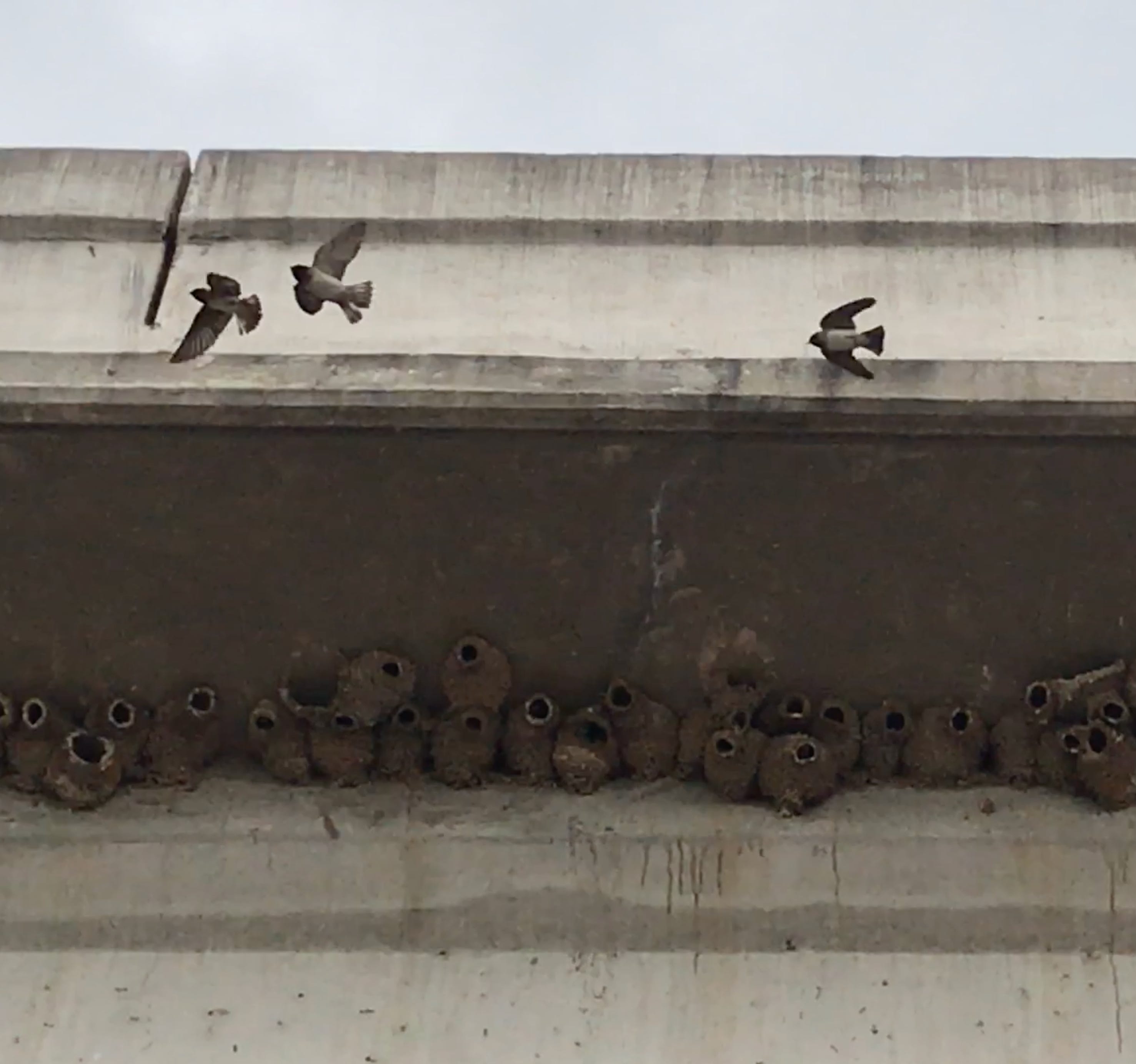 *Here are those swallows before their nests were hosed off, in April 2017, with an overflying jet: