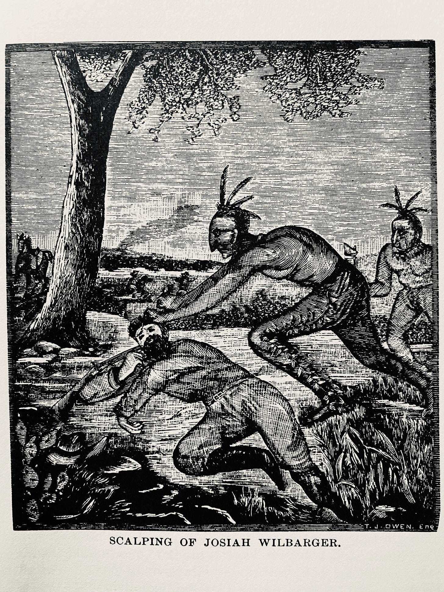 Wilbarger got an arrow to the leg and a bullet through his neck, and was left for dead. He was conscious as they scalped him, which he said sounded like distant thunder. They took all his clothes except for one sock. He tried to crawl to safety, eating snails in the bog while the coyotes howled nearby. When he woke in the night, he found “[t]he green flies had blown his wounds while he slept, and the maggots were at work, which pained and gave him fresh alarm.” But he made it, and, informed by a psychic vision, his neighbors found him the next day. He lived for another decade, until he bumped the hole in his head on a door frame.