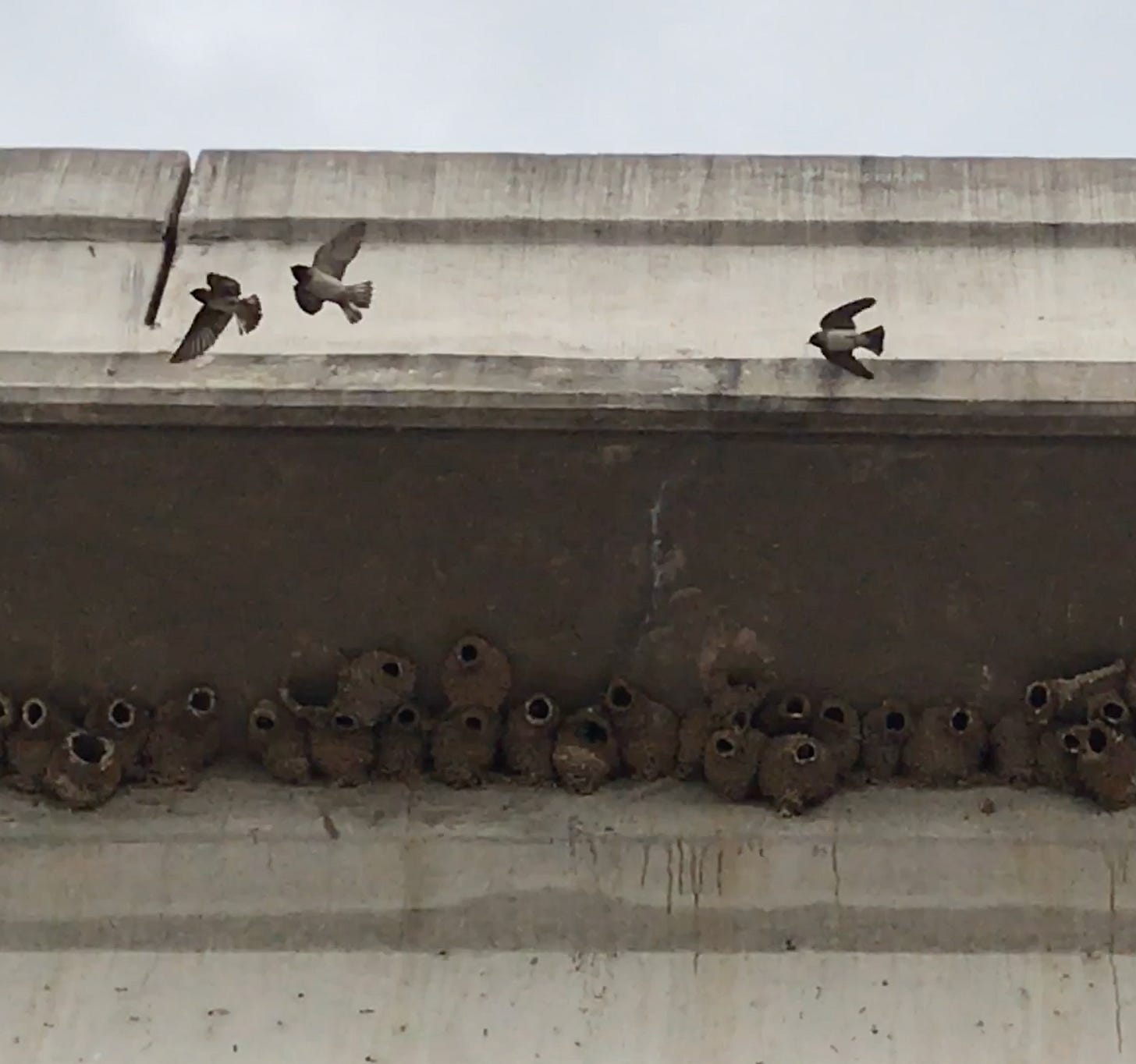 We saw the first cliff swallows of the season last Sunday morning, dancing over the urban river. They’re one of the first birds I really took notice of when I started exploring this area two decades ago, because they are such impressive Anthropocene adapters. They build their elaborate dwellings on the sides of the bridges, perfect pustules of mud spackled onto the steel trusses, usually in huge colonies. Each of their little huts has a tubular entrance on the outside, and when you find the colony, usually on the morning side of the bridge, you can’t believe how busy they stay, coming and going in and out with manic energy to feed their young.