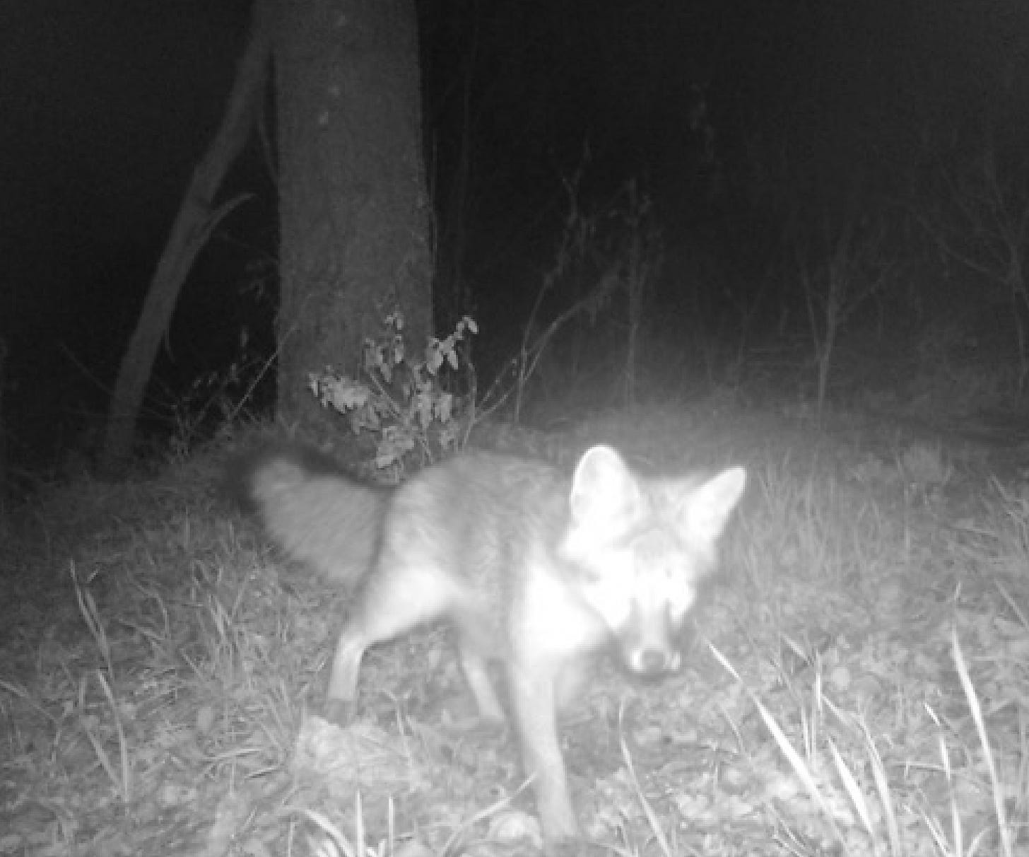 As we stood out there working on the box, I heard noises in the woods, and realized it was one of the foxes that live back there behind the door factory and the construction supply warehouse. Foxes, I have learned, sound like if cats could bark. You can’t really believe it until you see it. One of these days I will catch it on video, but the only way I have been able to photograph foxes thus far is with a trailcam.