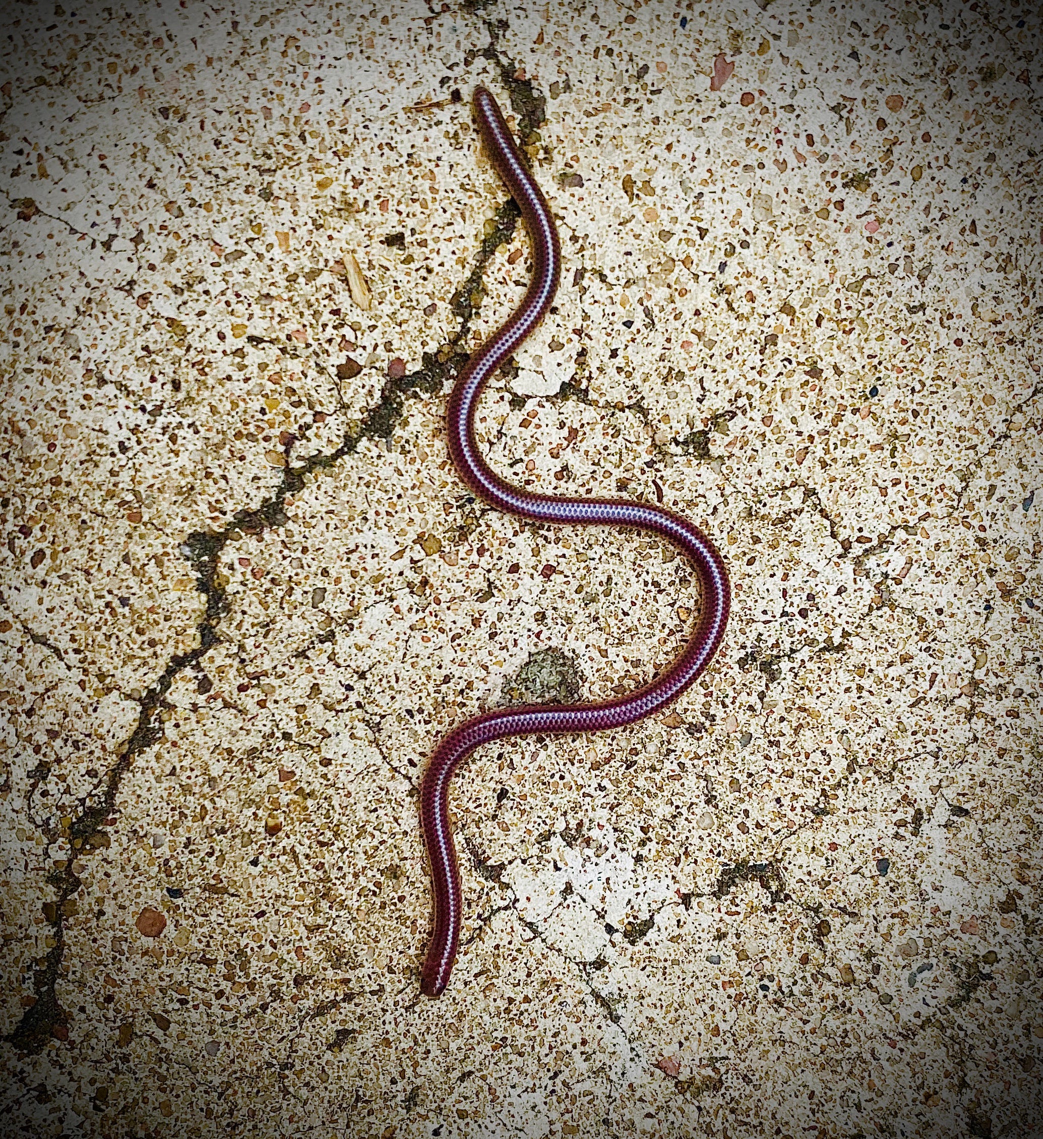 We had several signs of nature taking over our own home this week. The most anecdotally notable one was that I found a snake under the toilet Monday afternoon. The tiniest snake I’ve ever seen, and even kind of cute, with the kid’s book version of a snake face, but still a snake under the toilet. Looks like it was likely a plains blind snake, a species I had not encountered before. Small enough to get in along the water pipes, apparently.