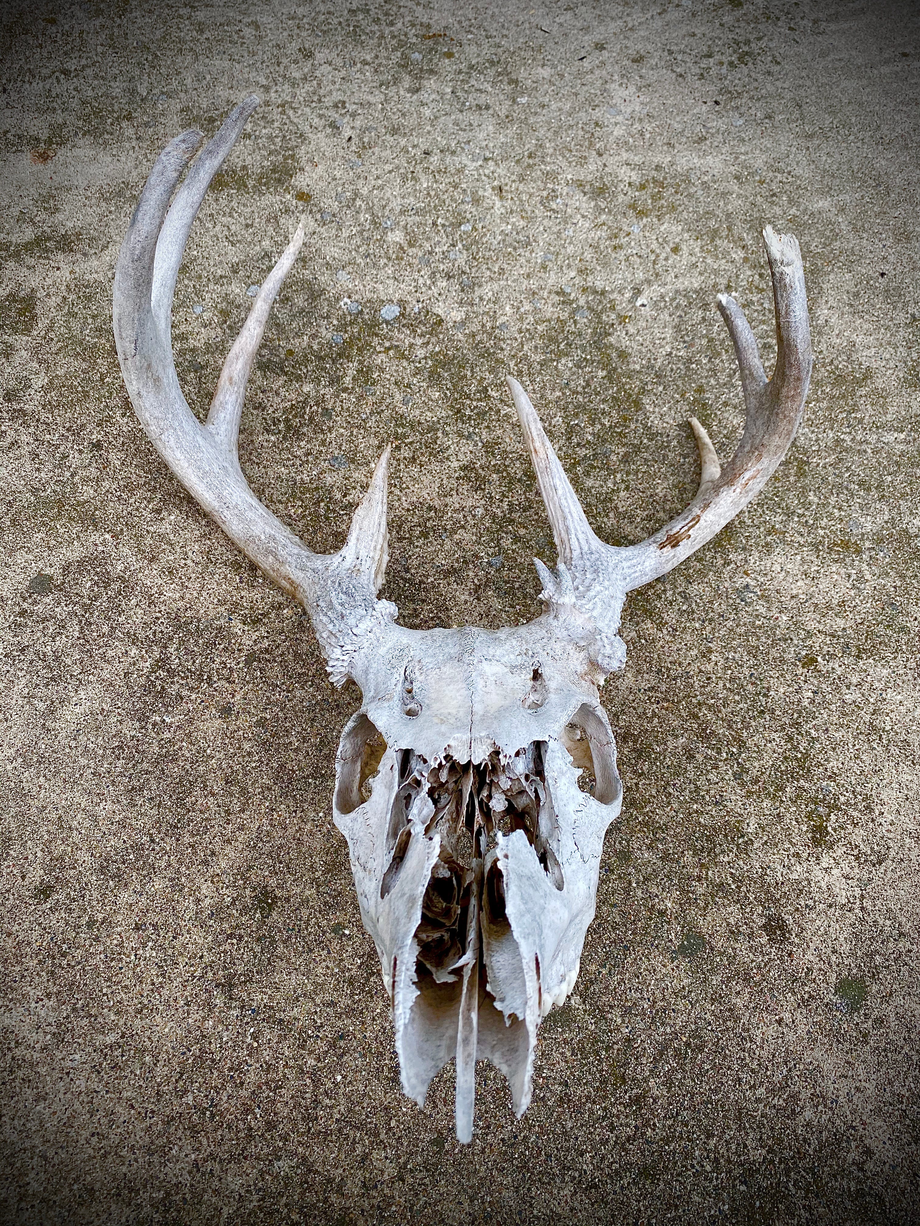 Thursday night I took the dogs out before bed. The sky was overcast, with a new moon, producing the blackest night I think I have ever experienced. Off to the west you could hear the cacophony of spring life in the wetland down by the creek, frogs and geese and bugs louder than when we can hear the music festivals upriver here in Austin. In the morning, the leftovers of successful predators could be found right at the perimeter of the house—the severed foot of a faun, little bits of bloodied bone, the fur from a ravaged warren. Farther down the woodland trail that once was a road, and maybe an Indian trail before that, I found the skull of a stag buried in the tall grass, relic of winter.