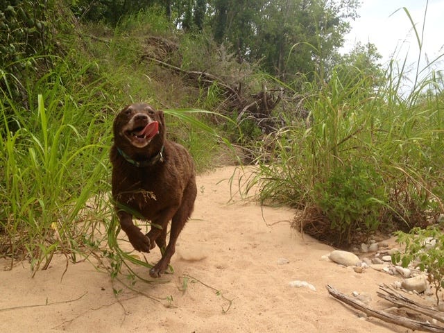 In addition to being a gifted filmmaker and a bad-ass outdoorswoman, our neighbor Gina is a master dog whisperer. About half the dogs on our street were rescued by her, usually from the street, including our edgeland ninja black retriever Lupe and her tan sister Lucy, who lives with our neighbors Leila and Jimmy and has the distinction of having once taken down a deer by chasing it into the river, climbing onto its back, and drowning it. One of the dogs that lived with Gina and her partner Mike died this week. Jordy was a cool dog, a dog Gina rescued by literally pulling her out of a dumpster almost 14 years ago. Jordy had other names, including Dumpster Dog, Judy, Junkyard. Chupacabra, Jordums, Brown Bear, Joradiah. She was a character. As Gina put it in her memorial post, Jordy was: