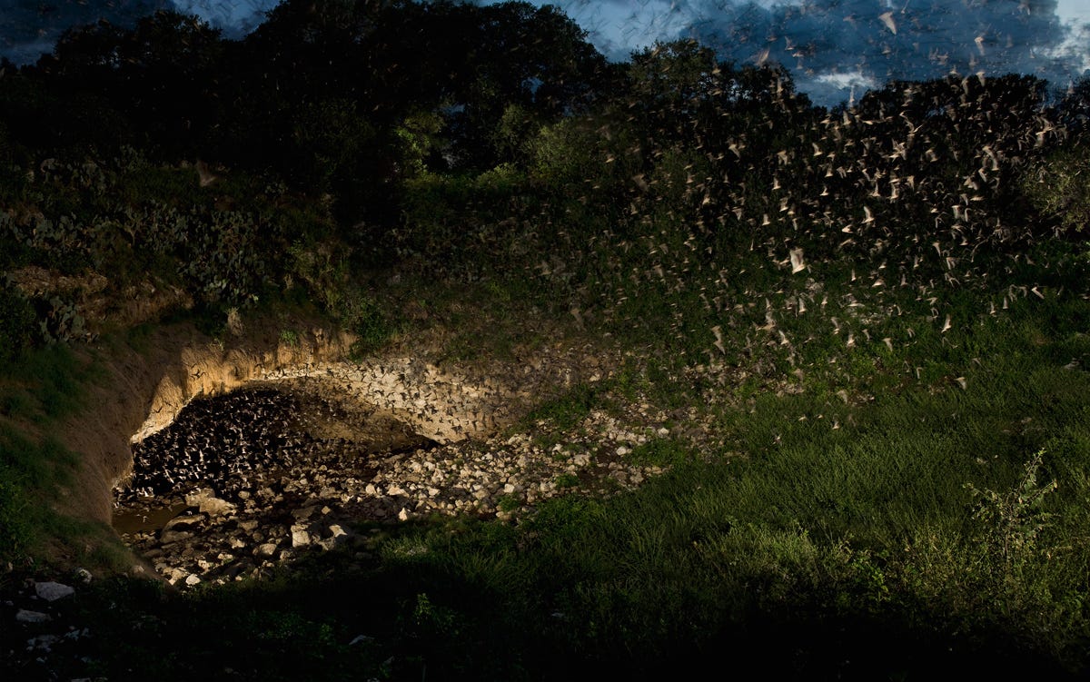 I’ve been down there to watch the emergence twice with my son, and it’s really astonishing. The cave is like a bubble of rock rising up out of the scrubby Hill Country landscape, and when you walk up around the eastern side there is an opening in the earth. As the sun begins to duck down, the bats start to peel of the walls, and for the next hour or two you can stand there as the swarm fills the air around your head, darting and dodging. When you get back in your car you smell like guano, and you don’t mind. Especially because you know the swarm is so big that the military jets from San Antonio’s Air Force bases have to fly around it.