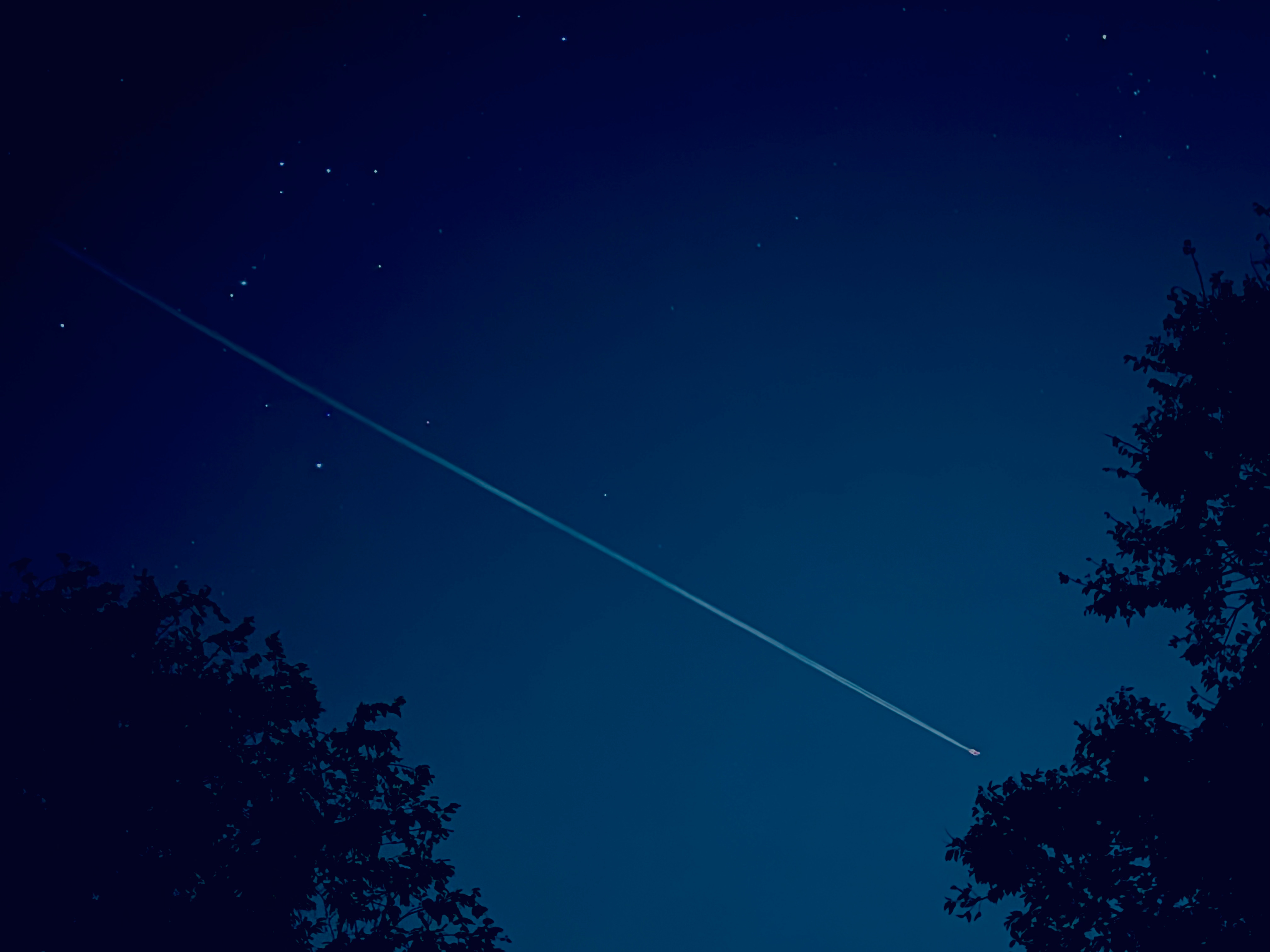 When I stepped outside Friday morning, Jupiter was high in the southern sky, right between the eyes of Taurus as Southwest 2741 marked its path below on the early run from Houston to Las Vegas. The Moon was exceptionally bright and blue, just a day into waning, and the light as it dropped in the West made the contrails of the 737 stand out with exceptional relief. A vapor trail laced with CO2, nitrogen oxides, carbon monoxide, sulfur oxides, unburned hydrocarbons, and traces of heavy metals, written out by a hundred-ton machine 36,000 feet above. The Moon was 224,000 miles away, and Jupiter 413 million miles, but something in the vivid dimensionality of the tableau made them all seem close.