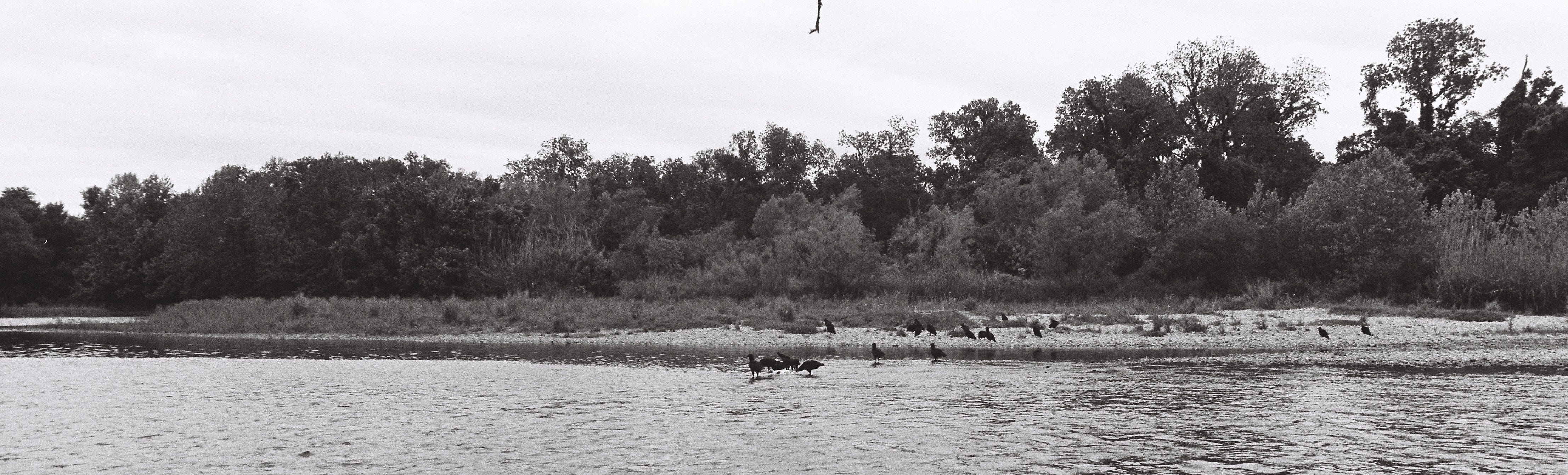 When we got to the river, a wake of twenty-some black vultures had gathered at the low water crossing by the overpass. Their find: a huge carp beached in the shallows, half of its body above the waterline, shiny scales exposed to the morning sun, and to the hooked beaks of the carrion crows taking turns shoveling out the good stuff from the new orifice they had cut into its side. A reminder that the river authority will soon begin its summer releases from the highland dams, sending water for the rice farmers at the coast, emptying more big fish from our downtown lake, and rendering the river and wetland impassable to the bikers. Maybe even Anthropocene habitats find their equilibrium, in time.