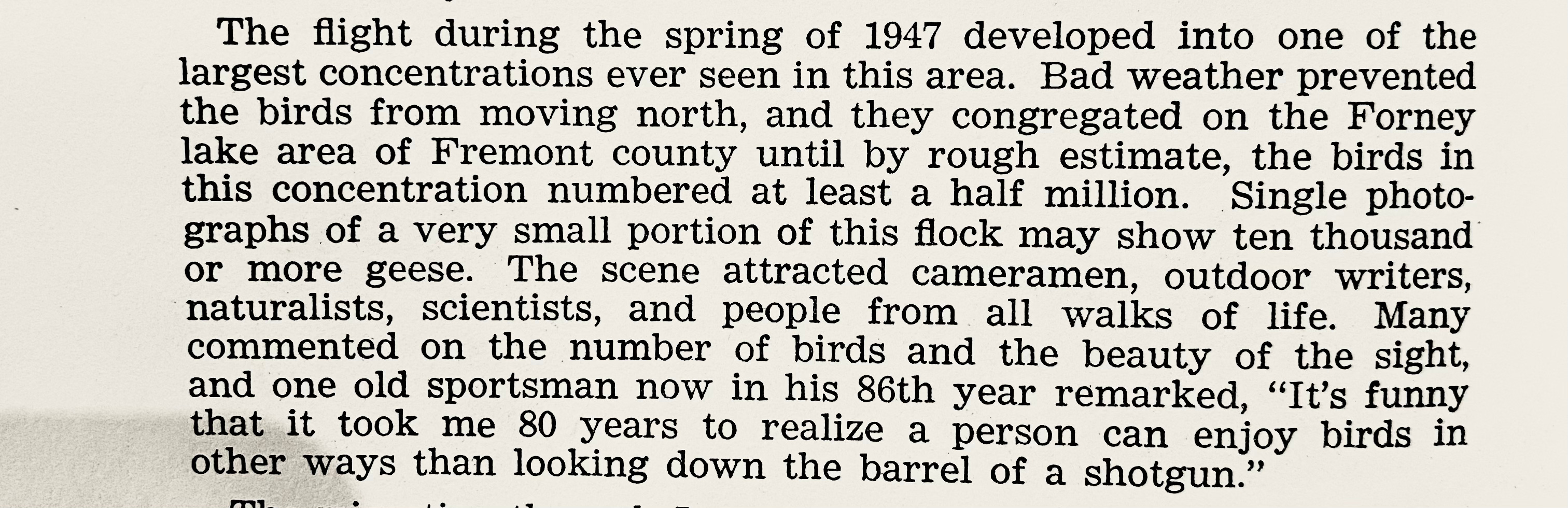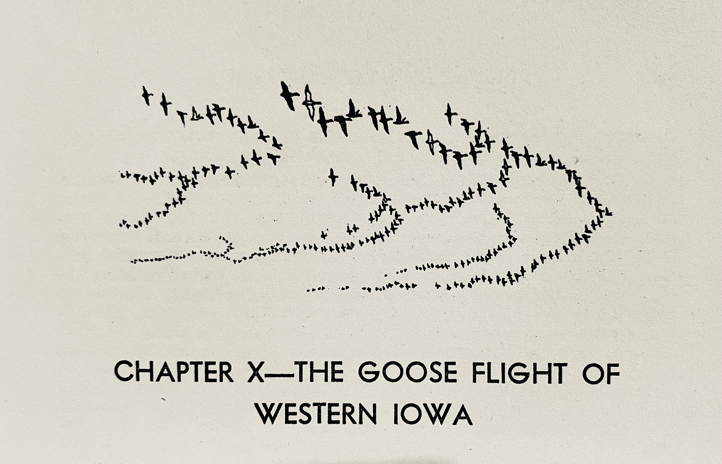 There’s a passage in Waterfowl of Iowa that gives a glimpse of the possibility of bringing back the experience of wild birds so abundant they darken the sky. It’s a recount of what happened one season when the book was being written, in the fertile floodplains of the Missouri River: