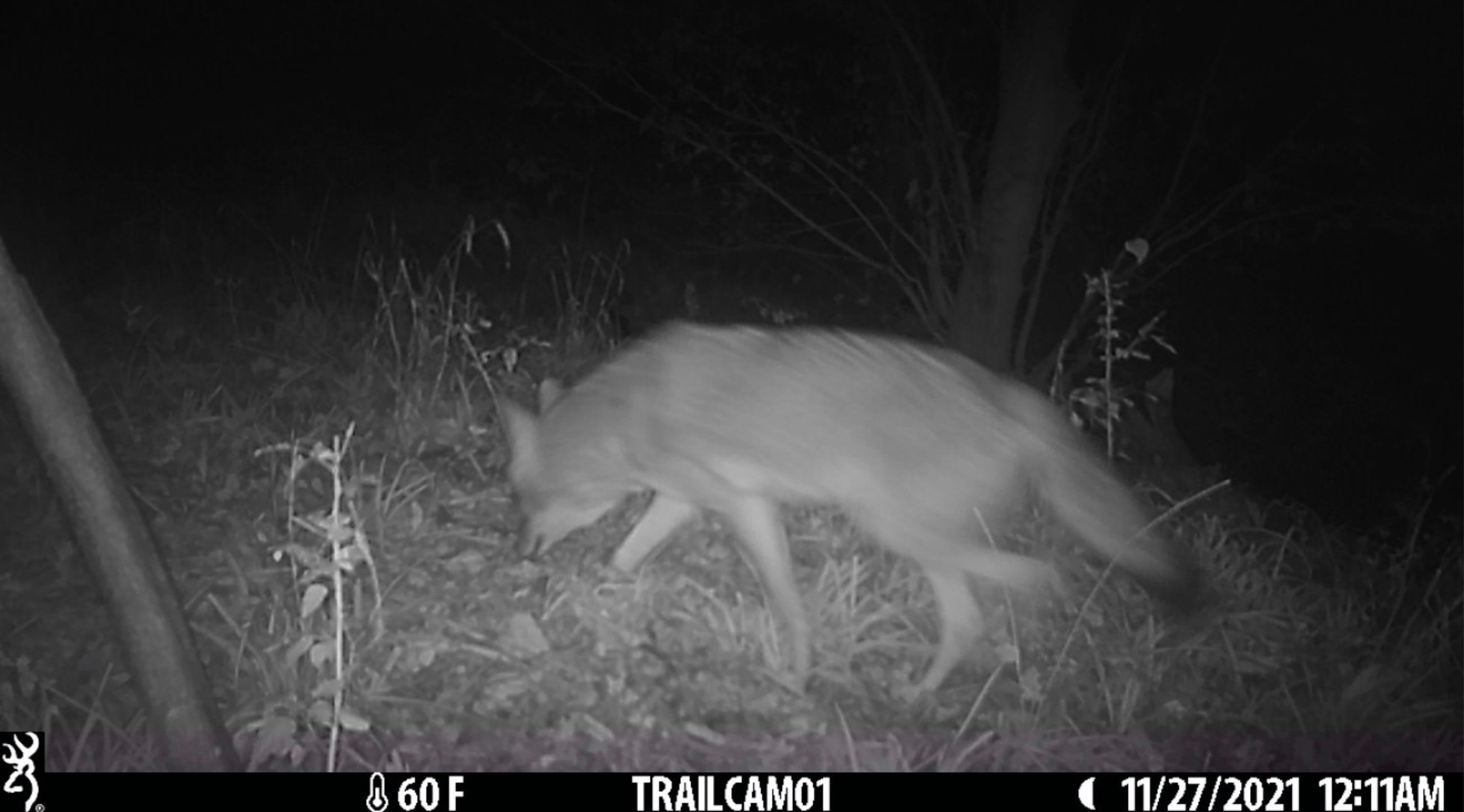 While we were away, I had the trailcam up at the back gate, curious to see what critters were out and about in the woods behind the factories as winter sets in. On the reel I found a whole lot of big fat raccoons, far more than I’ve ever seen around here, a bunch of plump armadillos digging around in the dirt, a few opossums, two lost fishermen, and just one loping midnight coyote. But there were more wild canids out there. Tuesday night I heard the first Joker laughs of the season down in the dark woods. That sound is crazy creepy, but also reassuring in its reminder that truly wild predators can still survive in the edges of the city.