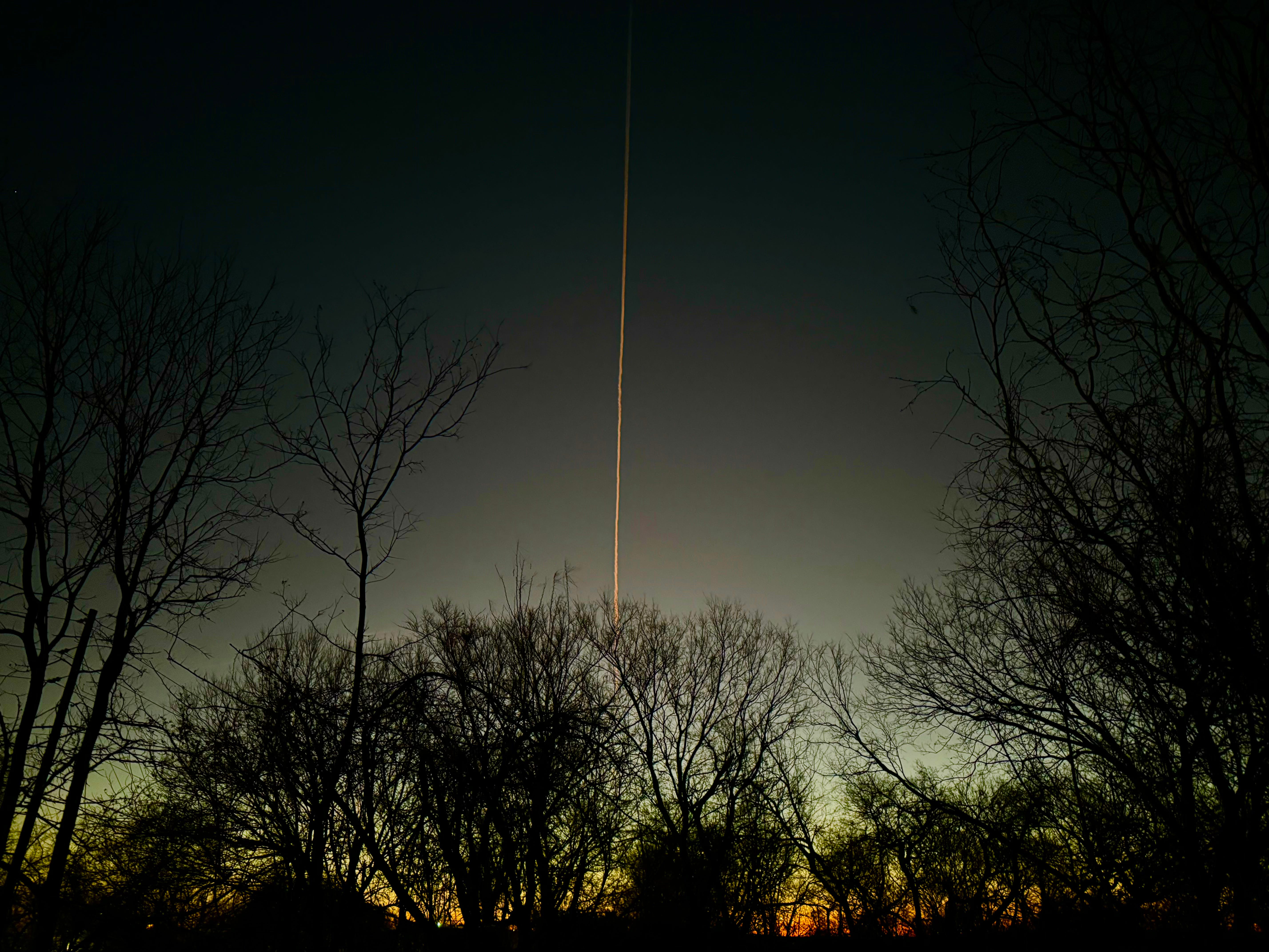 Saturday morning I stepped out to see a bright orange contrail cutting a straight line up through the eastern sky. You could still see Venus, bright and low, but Mercury and Mars were already enveloped in the light of dawn, and most of the other stars were gone. I looked up the flight on my phone, which you can do in the same way you look up a bird—easier, really, because the flights are all logged and tracked in the registry of human commerce. Southwest 2035, carrying sunbirds from Houston to Phoenix, the airport they call the Sky Harbor.