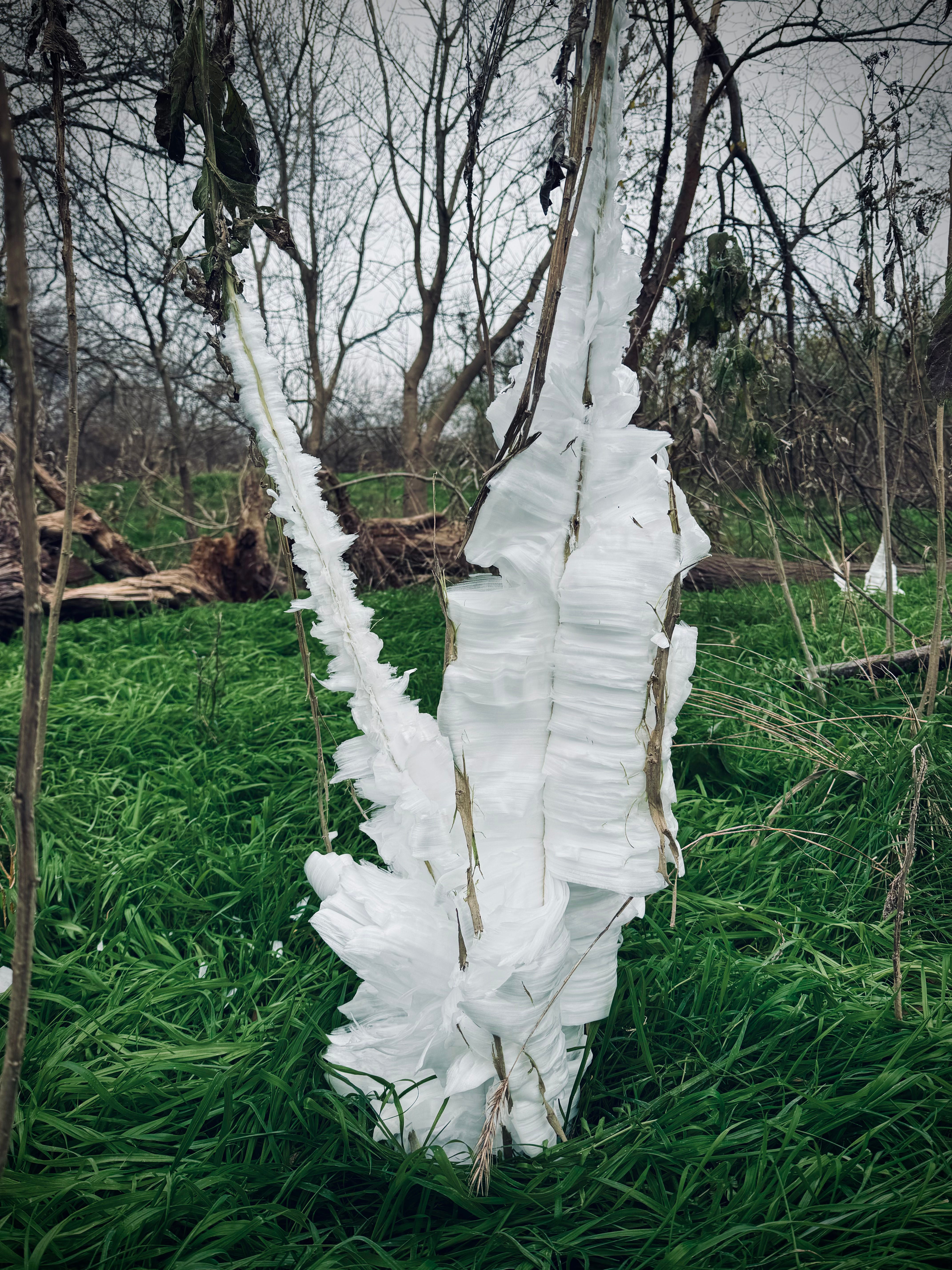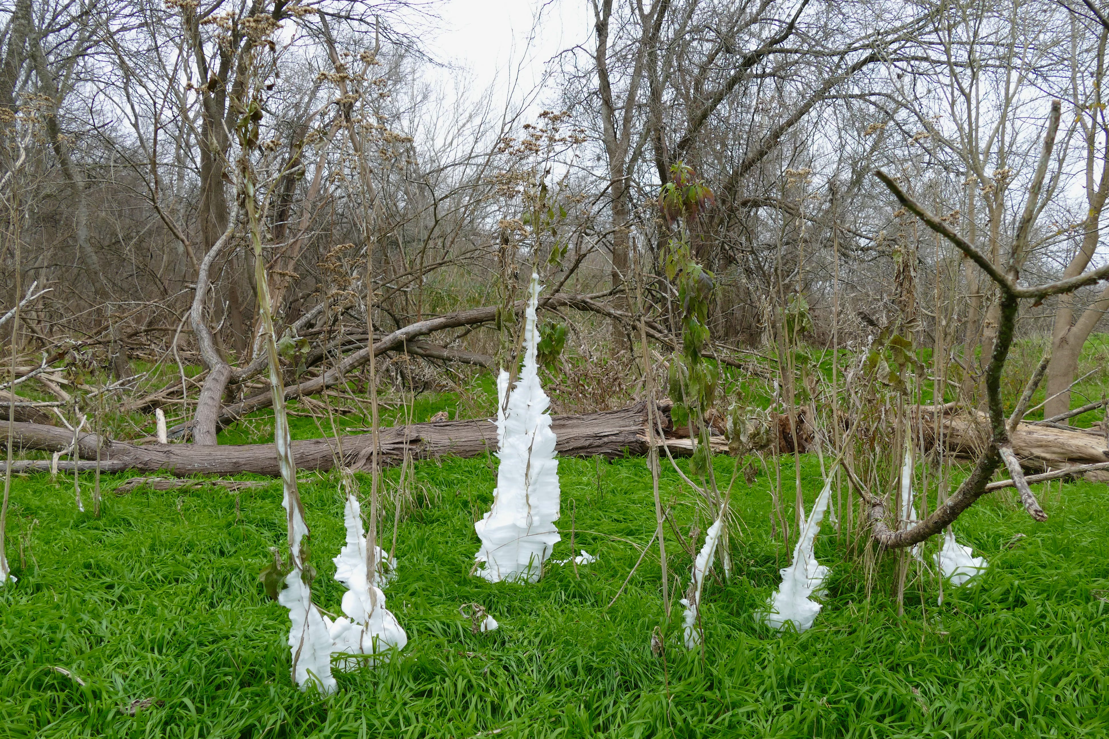 It seemed perfect conditions for the frostweed to fully express, and when the dog and I got deeper in the floodplain, we found a patch—native plants that sprout trippy ice crystals from their stems when the first freeze happens after the autumn rains.