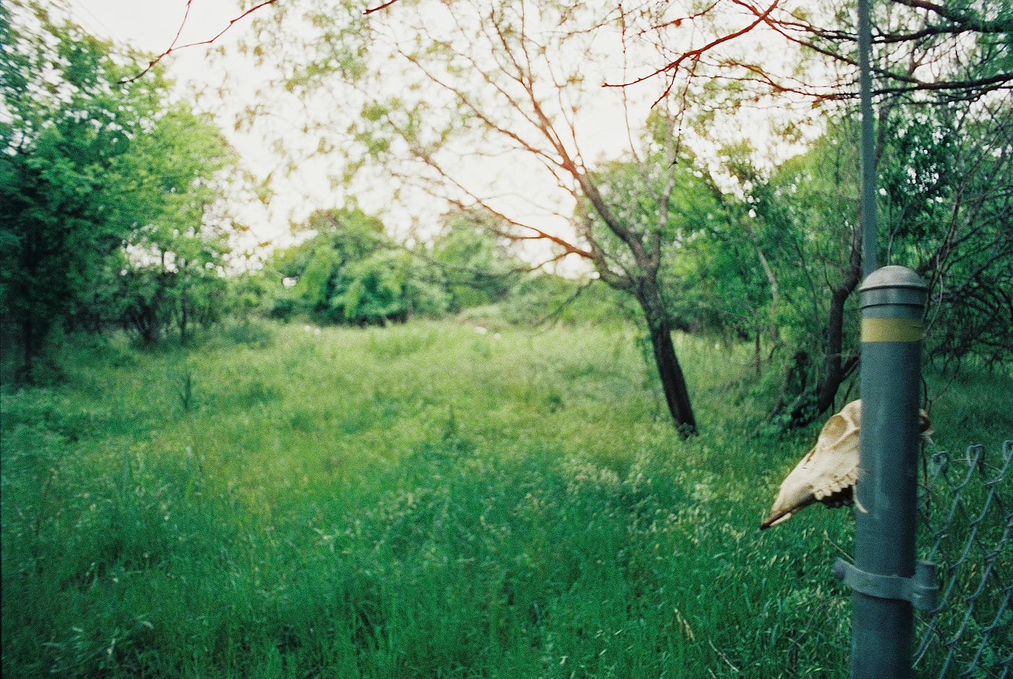 Last Sunday morning the East Austin street retriever and I set out for a wander right at daybreak. It was still on the dark side, but I had a roll of low light tungsten film I was keen to try out, and the expectation based on two decades exploring these wild urban interzones that the crepuscular hour is when you are most likely to encounter the majesty of other species, and the wonders of the uncanny.