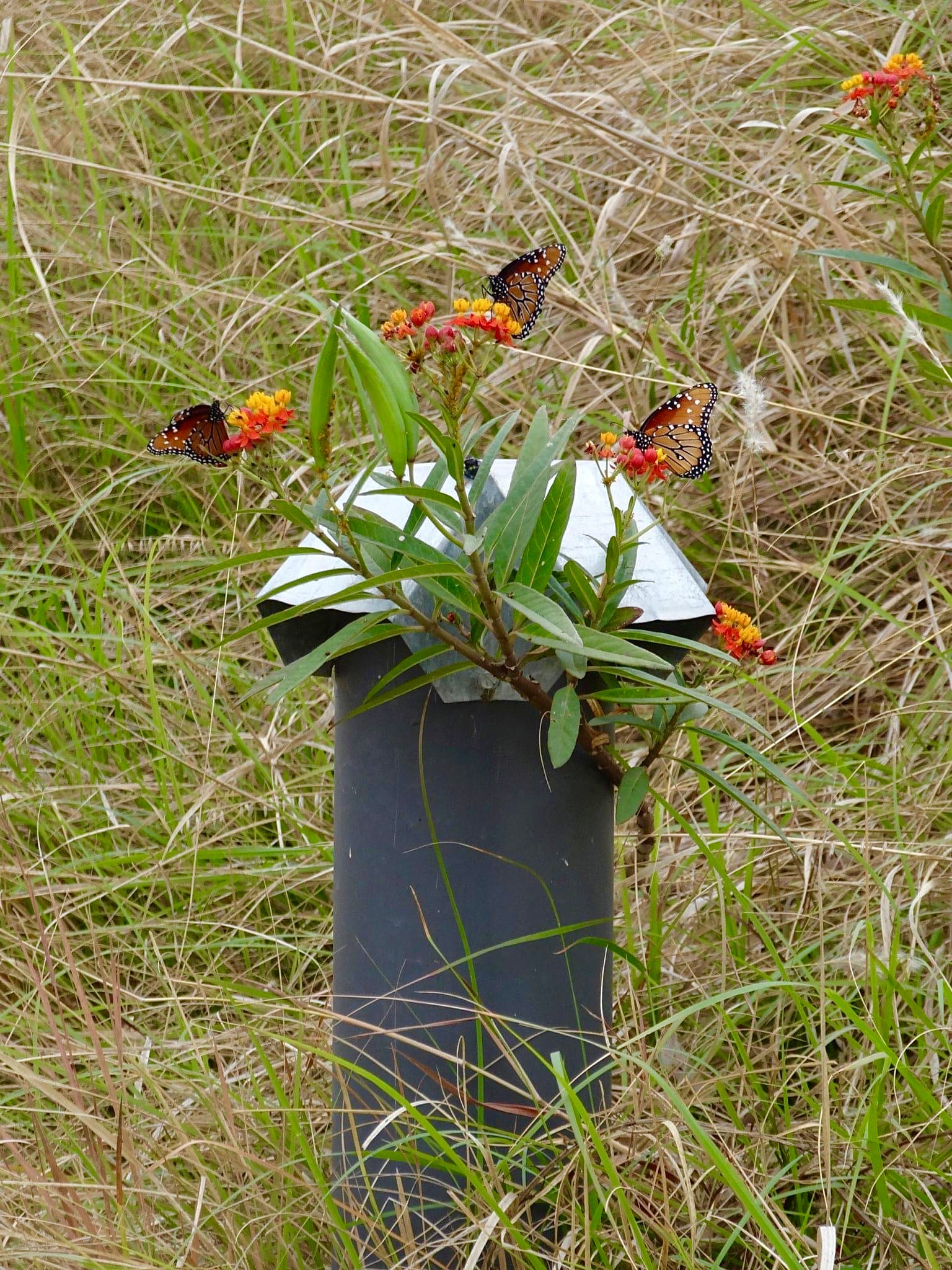 Not Monarchs, rather Queen butterflies: https://simple.wikipedia.org/wiki/Queen_(butterfly). Otherwise nice post...