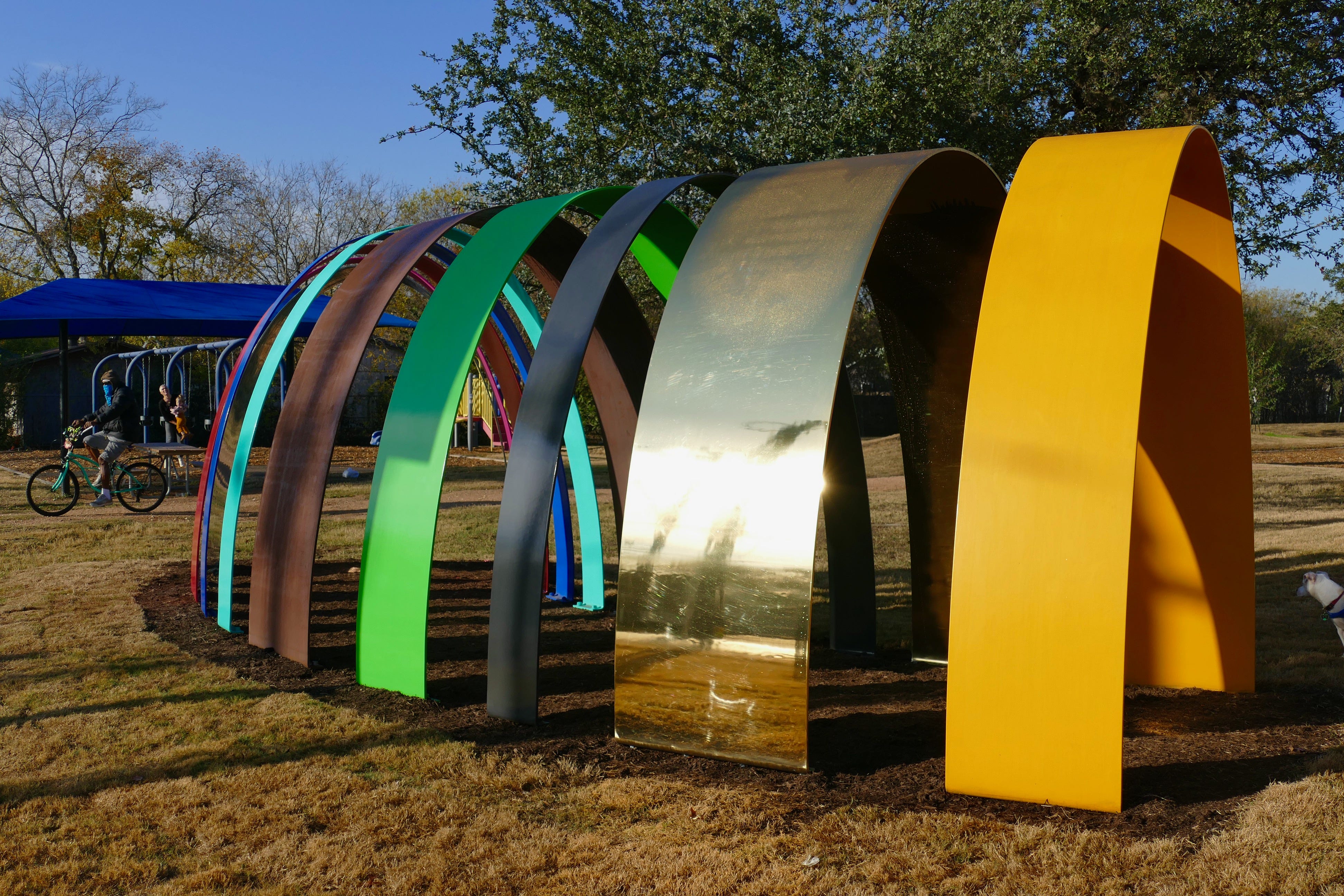 This week my wife and partner Agustina Rodriguez completed her newest public art installation here in Austin, an outdoor sculpture that riffs (among other things) on the same bridge we watched the caracara from last weekend. Everywhen is located at the newly renovated Montopolis Recreation Center that bridge leads to, informed by the geography and popular identity of this unique and historically underserved neighborhood. If you’re local, go check it out while that brass and steel are at their maximum shine. There are several other new pieces inside and out, each one an amazing example of art that channels the voice of its community.