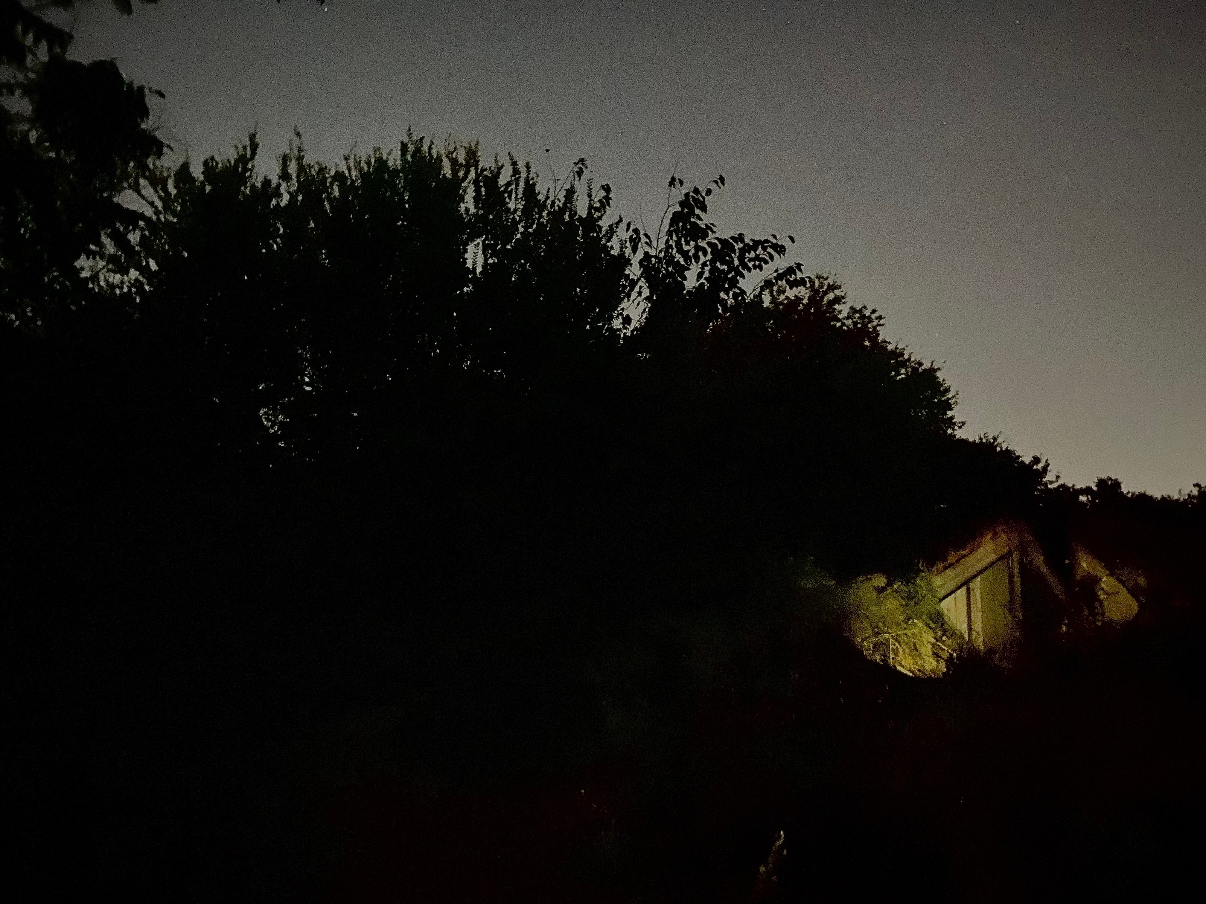 The nights are dark here at the edge of the woods at the edge of town, especially in summer on days when the moon sets early. The glare of the central city still dulls the sky, but you can see the near planets and the brighter stars, and when I walk from my trailer to the house I look out into the inky black of the empty lot to the east and wonder what’s making that noise. That darkness is as much a part of the urban wildlife habitat as the trees, and even more threatened.