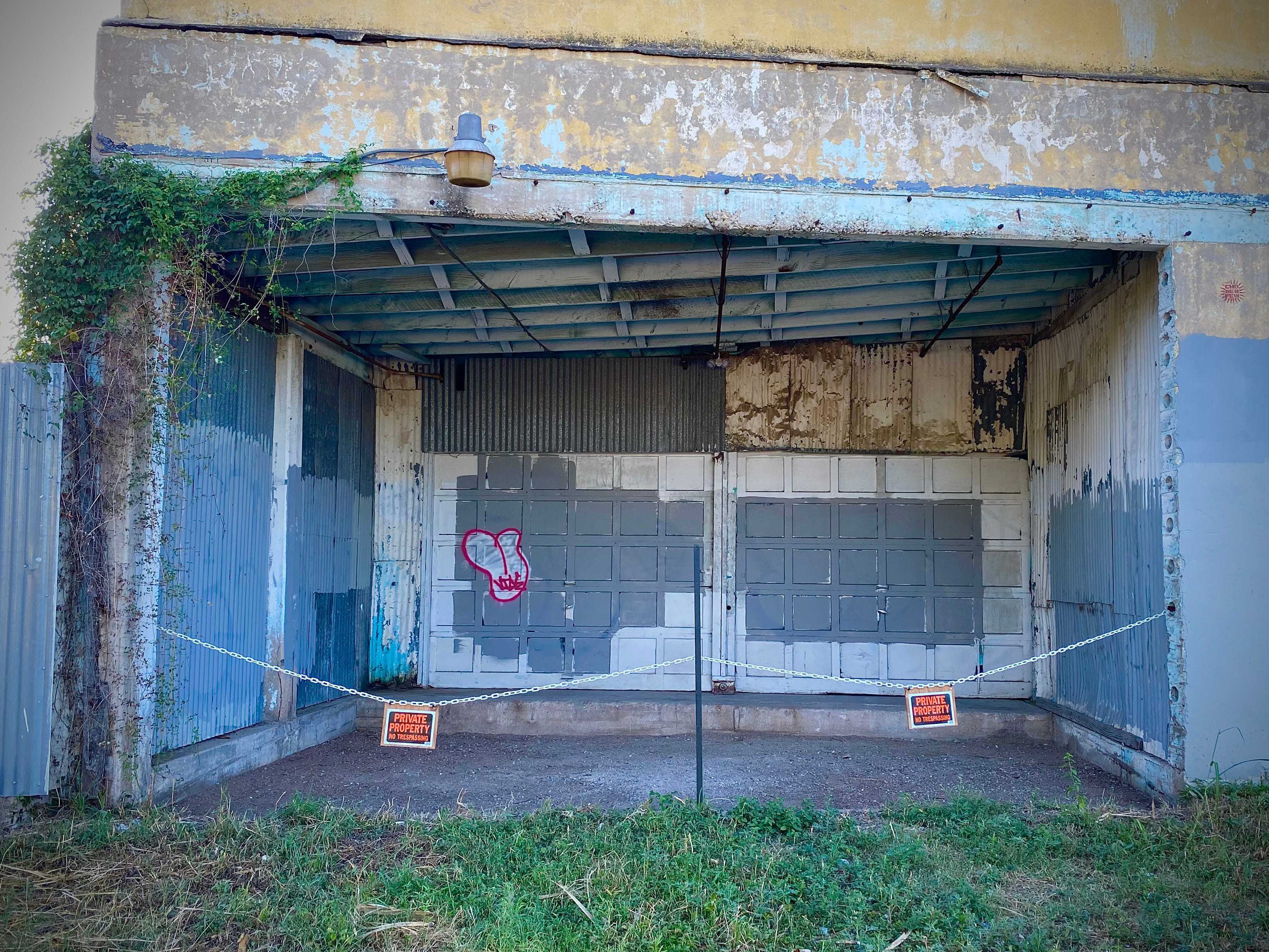 At the west end there’s a little alcove that was especially popular with the Instagrammers until this old-looking dude, who is probably not really that old, settled in there not long before Covid hit. He accumulated furniture and clothes and trash, and was almost always there, sleeping or shuffling around the intersection, a quiet sentinel with ethereal eyes. In the winter I tried to check in with, and gave him a good sleeping bag and some cash. When the storm was coming we gave him a heads up and he found shelter, then returned. The business didn’t seem to mind him, even as the quantity of trash became epic, until Thursday afternoon when I drove by and saw the spot had been suddenly cleaned up and roped off with plastic chains, its occupant abruptly banished.
