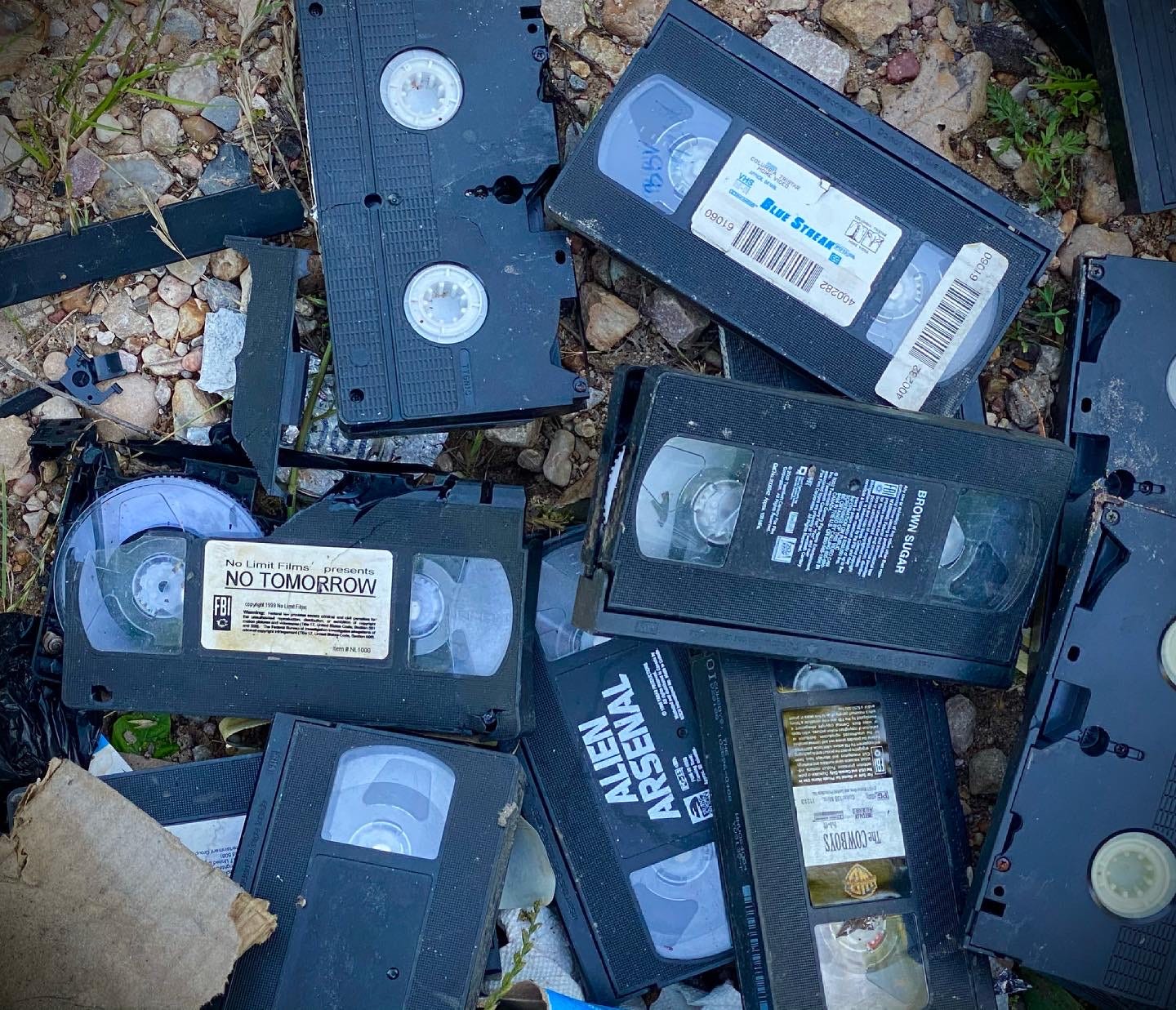 There on the landing next to a pile of empty Corona bottles someone had dumped a collection of VHS tapes. Action movies, mostly, eclectically curated: Alien Arsenal, Assassins, Blade, Blue Streak, Spartacus. In the middle of the pile, a message from 1999—NO TOMORROW. And you could almost believe it, even as the evidence around you indicated that the rest of the world will still be here after the human civilization that invented the idea of tomorrow runs out of fields to foul.