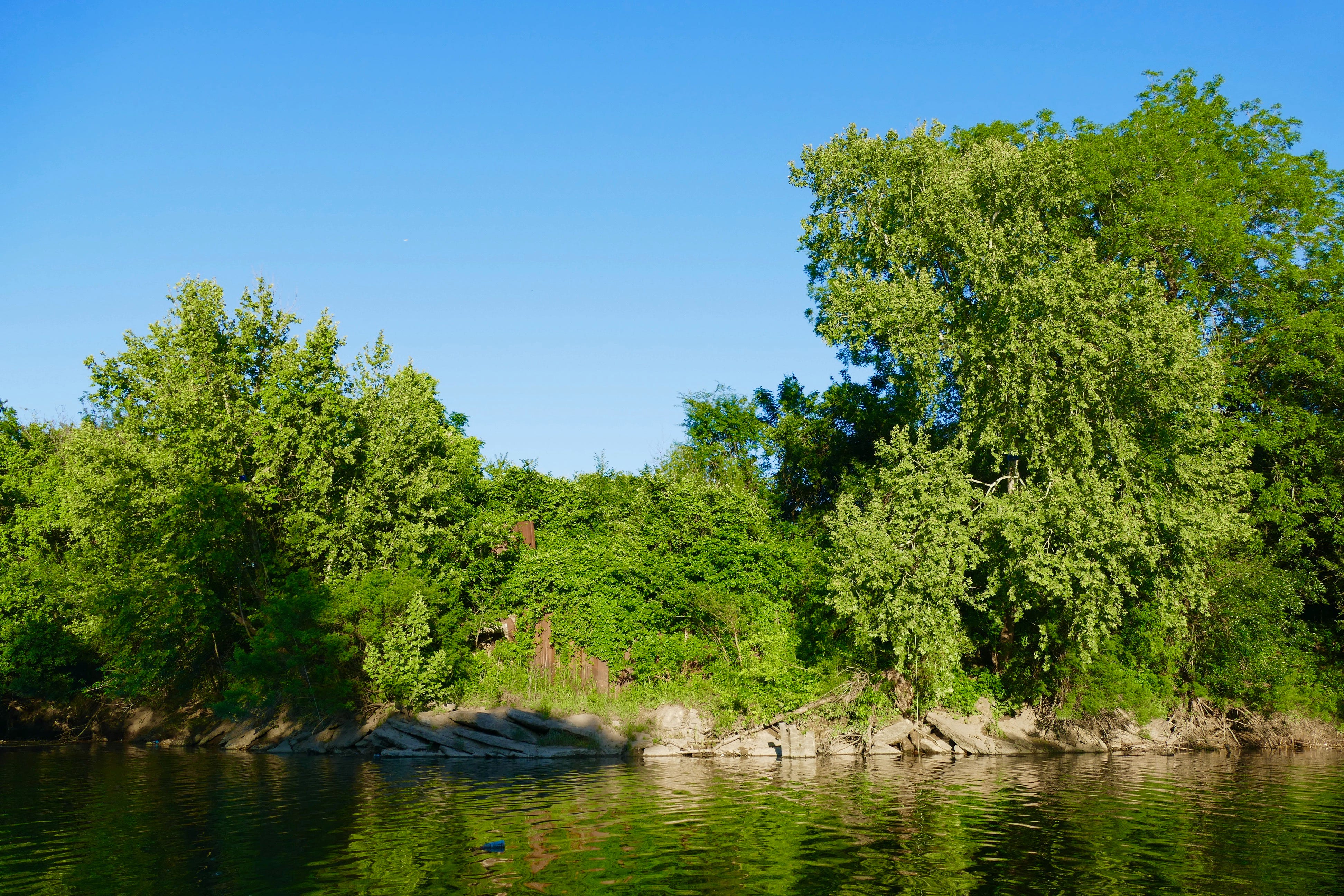 The very first time I came to that spot was by water, when it was still an active aggregate plant. My then grade school-age son and I canoed down with a buddy of his who now makes movies, and found a bridge that had been made by the mineral extractors to connect their operations on either side of the river. It was a Saturday, so we pulled up and checked out the site. The bridge is gone now, and you might not notice the footings there beneath the foliage if you didn’t know to look for them. You might even mistake the piles of concrete debris along the banks for regular rocks. Maybe, in a sense, they are.