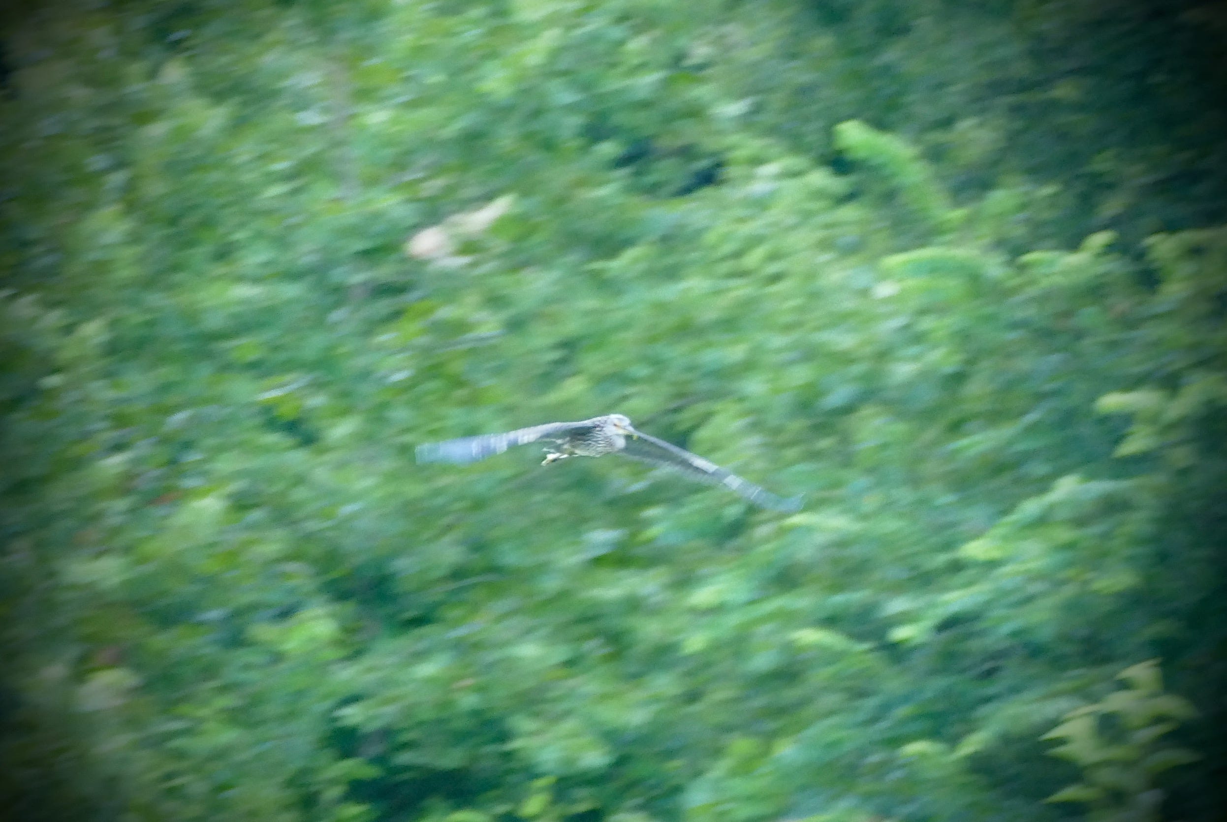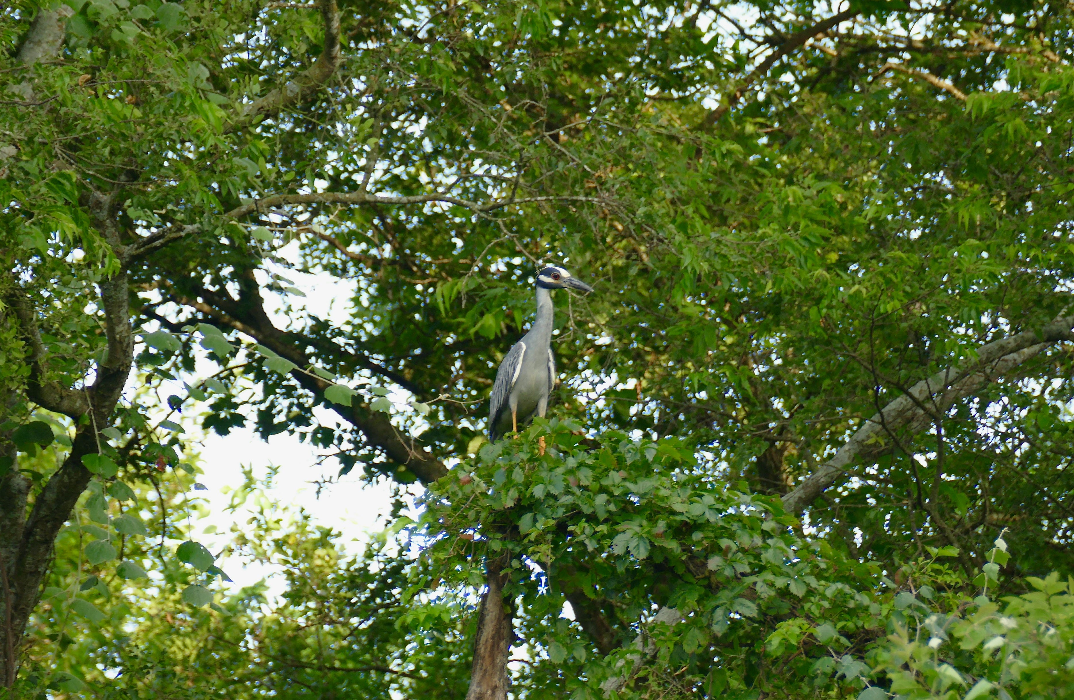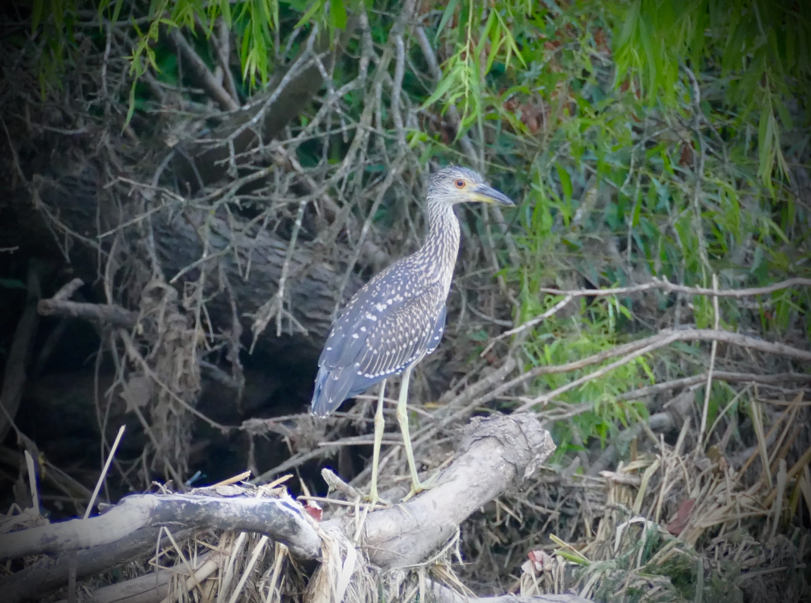 We found the last of the night herons back behind the big camp at the edge of the preserve, where someone had their clothes out to dry on a branch. It looked young, too, more from its gawky proportions than its colors.