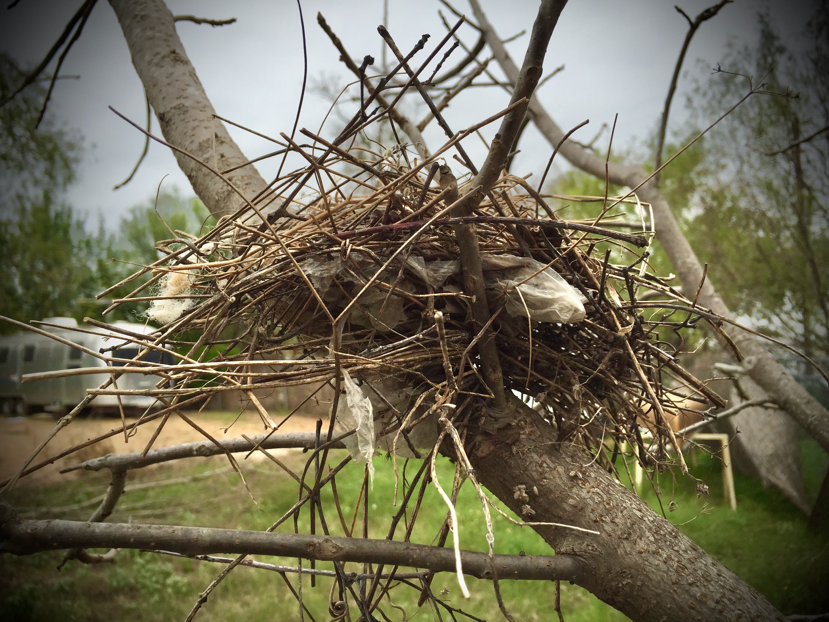 Back home, in our little refuge that occupies the edgeland between the light industrial zone and the woods along that river, the cardinals have been building their nests. Commonplace birds that seem especially common here, they are easy to take for granted. Until you see how even more ingenious they are than the tree ducks and herons at adapting to the anthropogenic environment, using bits of our trash to make better incubators for their young.