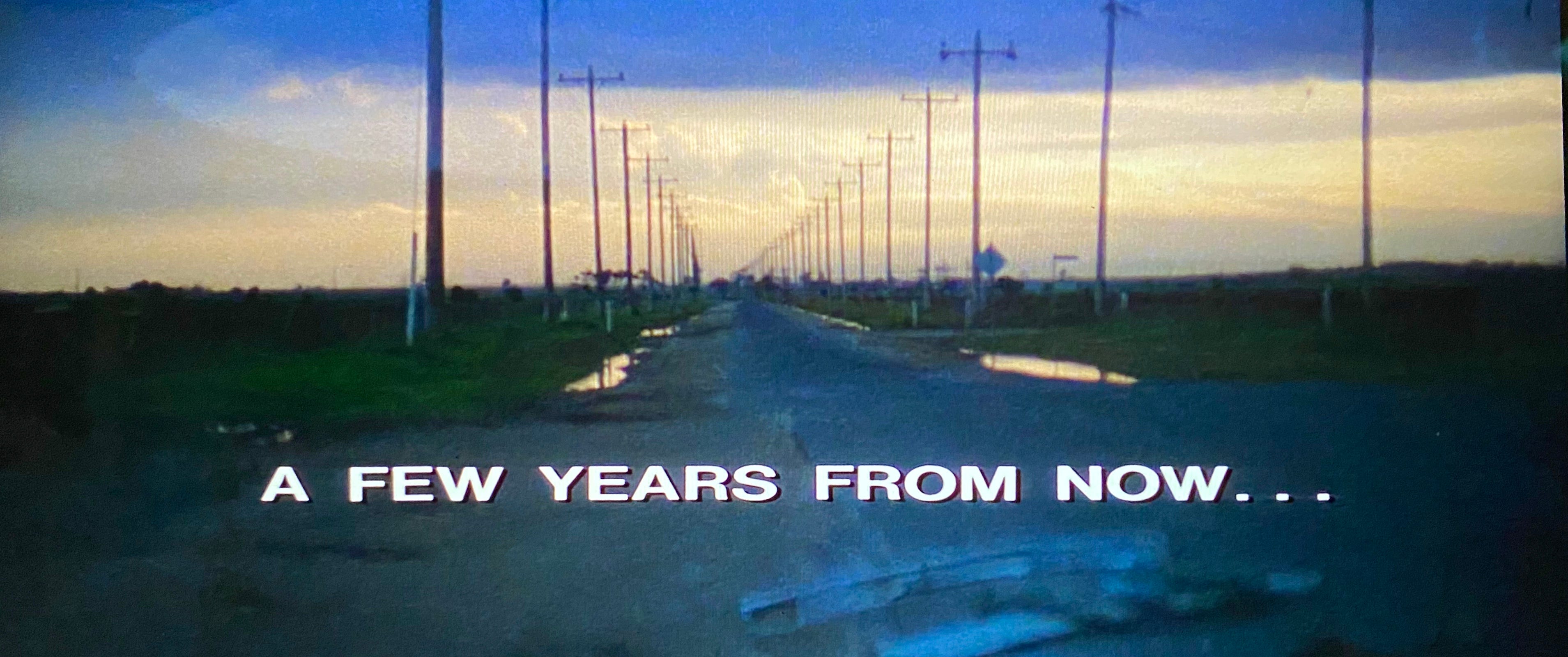 I remember being disappointed upon my original viewing at its failure to live up to the “warriors of the wasteland” setting of its better-known sequels. But watching it now, its use of real-world locations from the outskirts of Melbourne feels weirdly grounded in our contemporary moment. The settings look a lot like the Austin edgelands where we live, or the outskirts of Houston—lots of industrial facilities and warehouses amid big tracts of undeveloped land, green but starting to dry out. Not post-apocalyptic, but a window into a society collapsing so slowly that its inhabitants don’t see what’s coming.